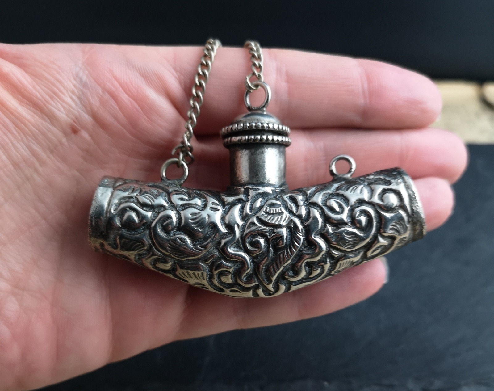 Rare Antique Indian Silver Scent Flask, Scent Bottle, 19th Century Mughal Empire