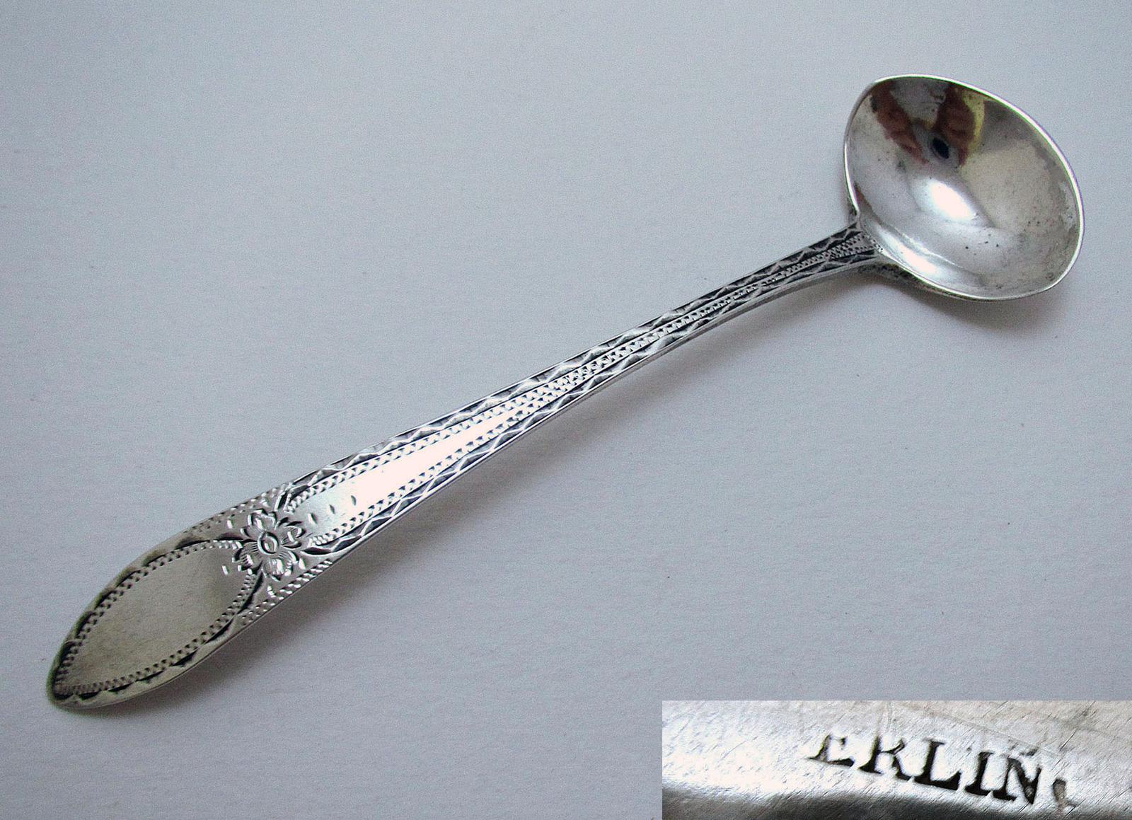 Rare Antique Irish Provincial (c1780) Celtic Point Bright-cut Solid Sterling Silver Salt Mustard Pot Condiment Spoon Georgian George III