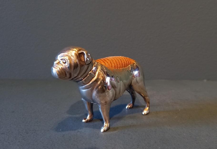 Rare Antique Silver Novelty Bulldog Pin Cushion