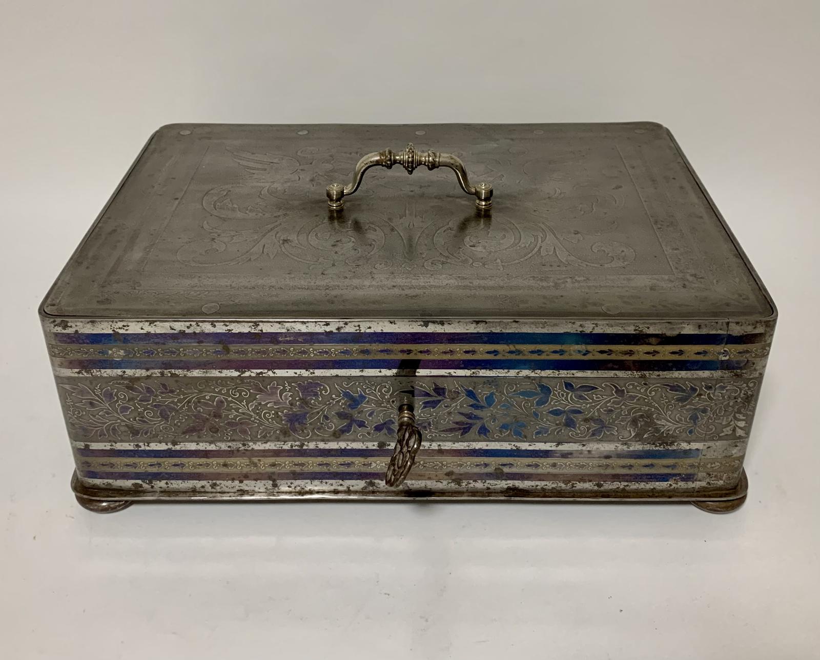 Rare Antique Victorian Etched Steel Strongbox Safe with Key (1 of 14)