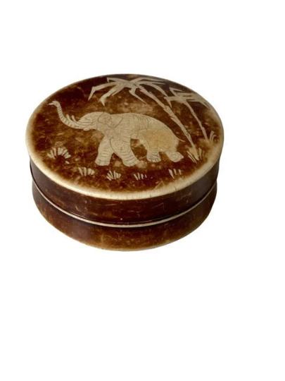 Rare Art Deco 1920s Hand Painted Elephant Bakelite Powder Compact Rouge Pot