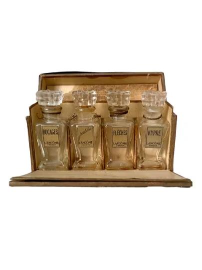 Rare Art Deco 1930s Lancome Set of 4 Miniature Perfume Scent Bottles Bocage Peut-etre Fleches & Kypre in Presentation Box