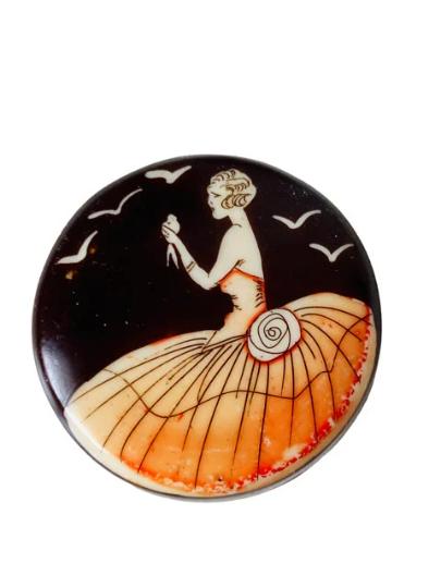 Rare Art Deco French 1920's Hand Painted Bakelite Miniature Powder Compact Rouge Pot