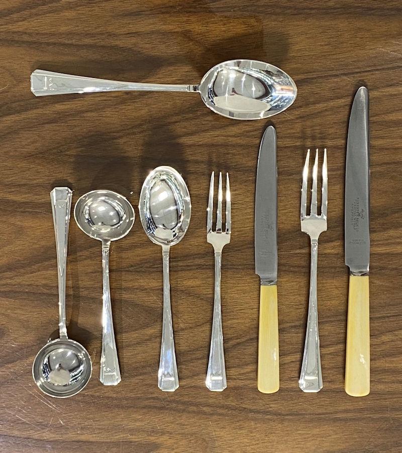 Rare Art Deco Prototype Plain Pine Pattern Cutlery / Flatware Service