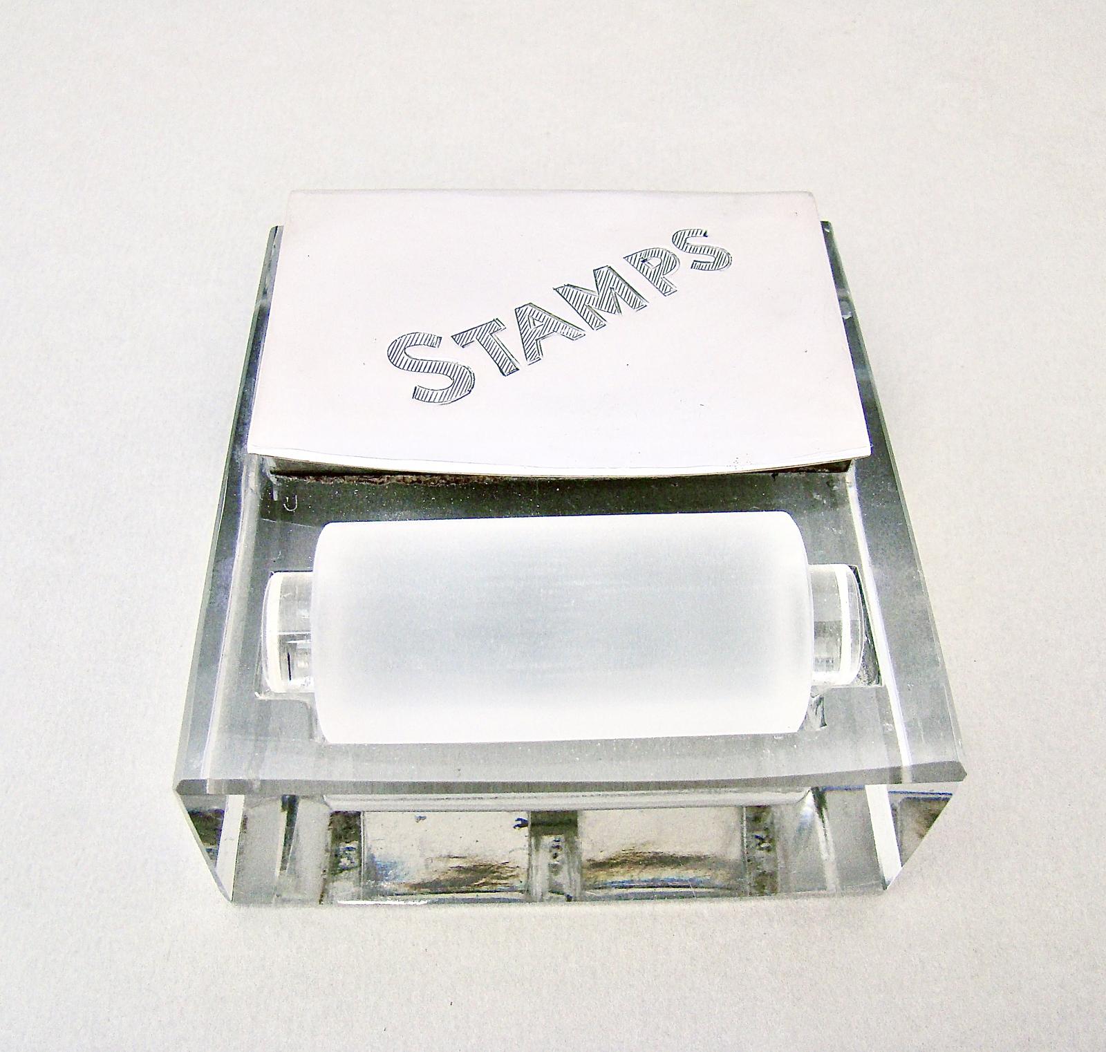 Rare Art Deco Silver Double Stamp Box With Glass Moistener, London 1924