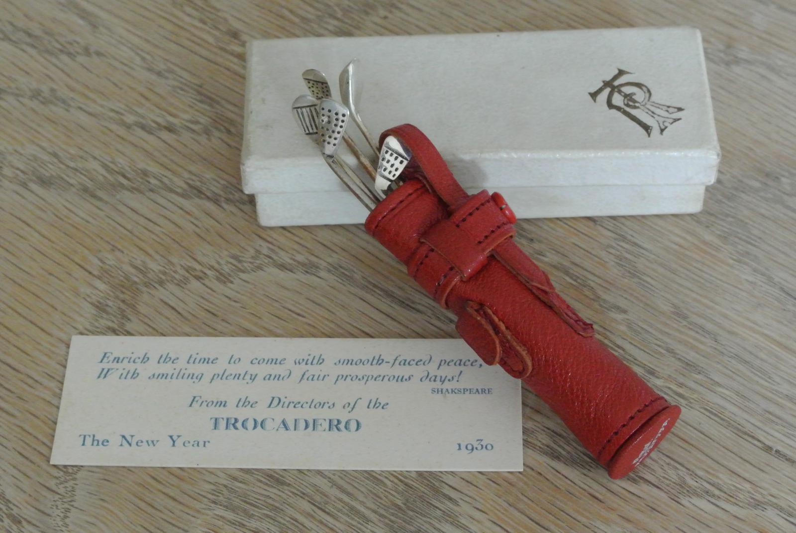 Rare Art Deco Silver Mounted Manicure Set In the Form of Golf Clubs in Leather Caddy c.1930