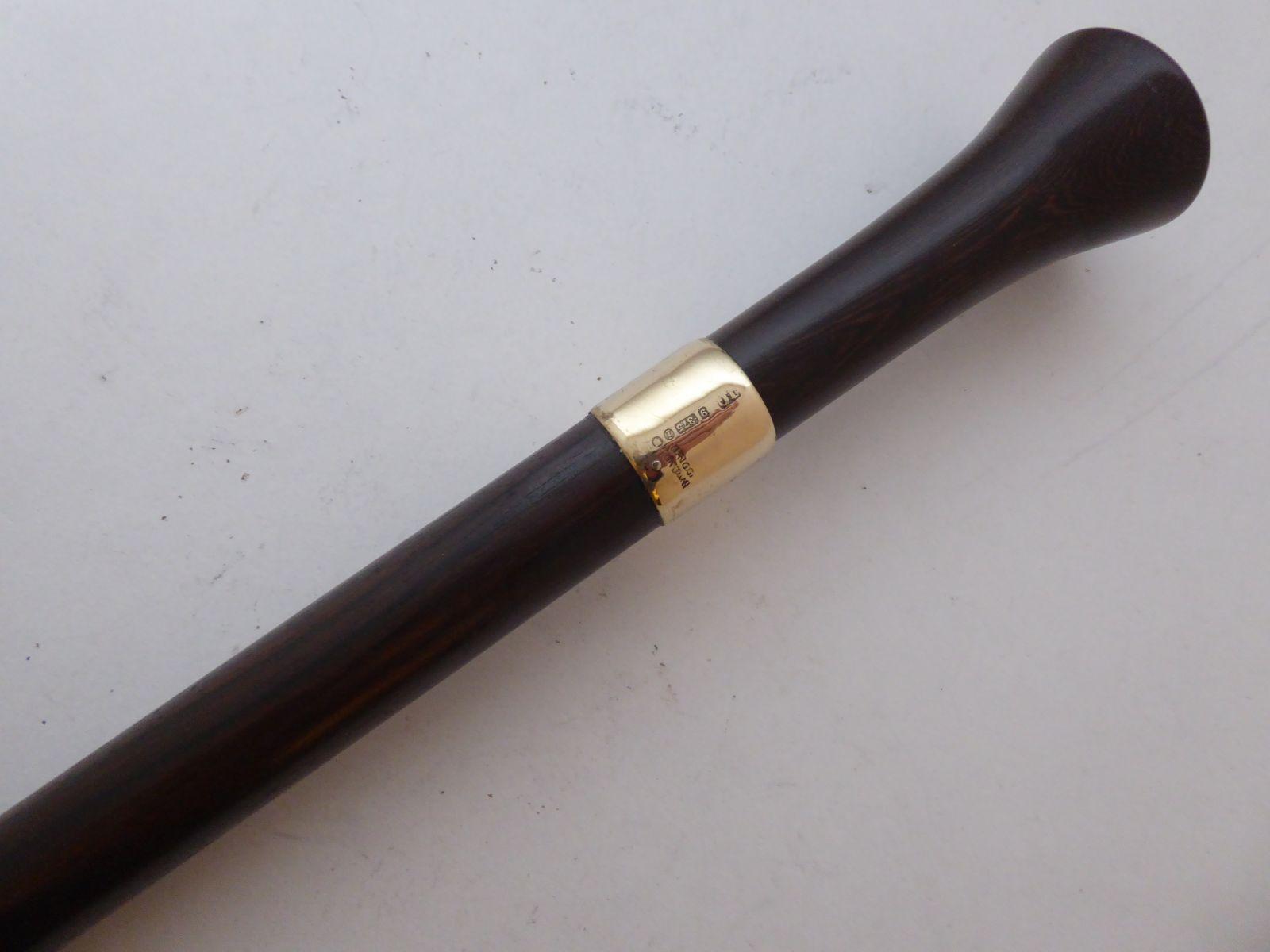 Rare Art Deco Walking Stick Cane 1964 Hallmarked 9ct Gold Collar Rosewood Shaft