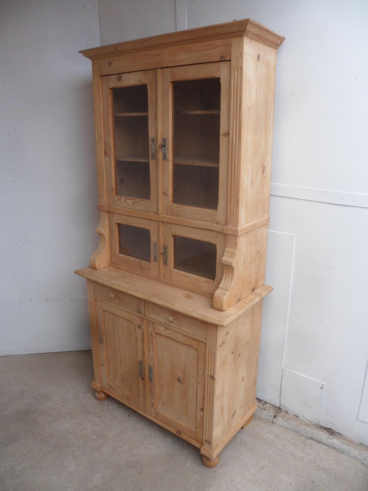 Rare Art Nouveau Antique Pine 6 Door 2 Piece Kitchen Dresser to wax / paint