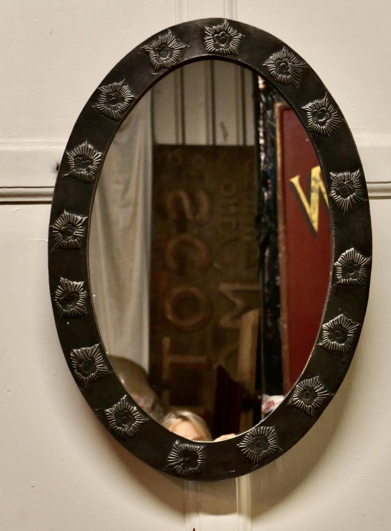 Rare Art Nouveau Oval Pewter Wall Mirror by Daum