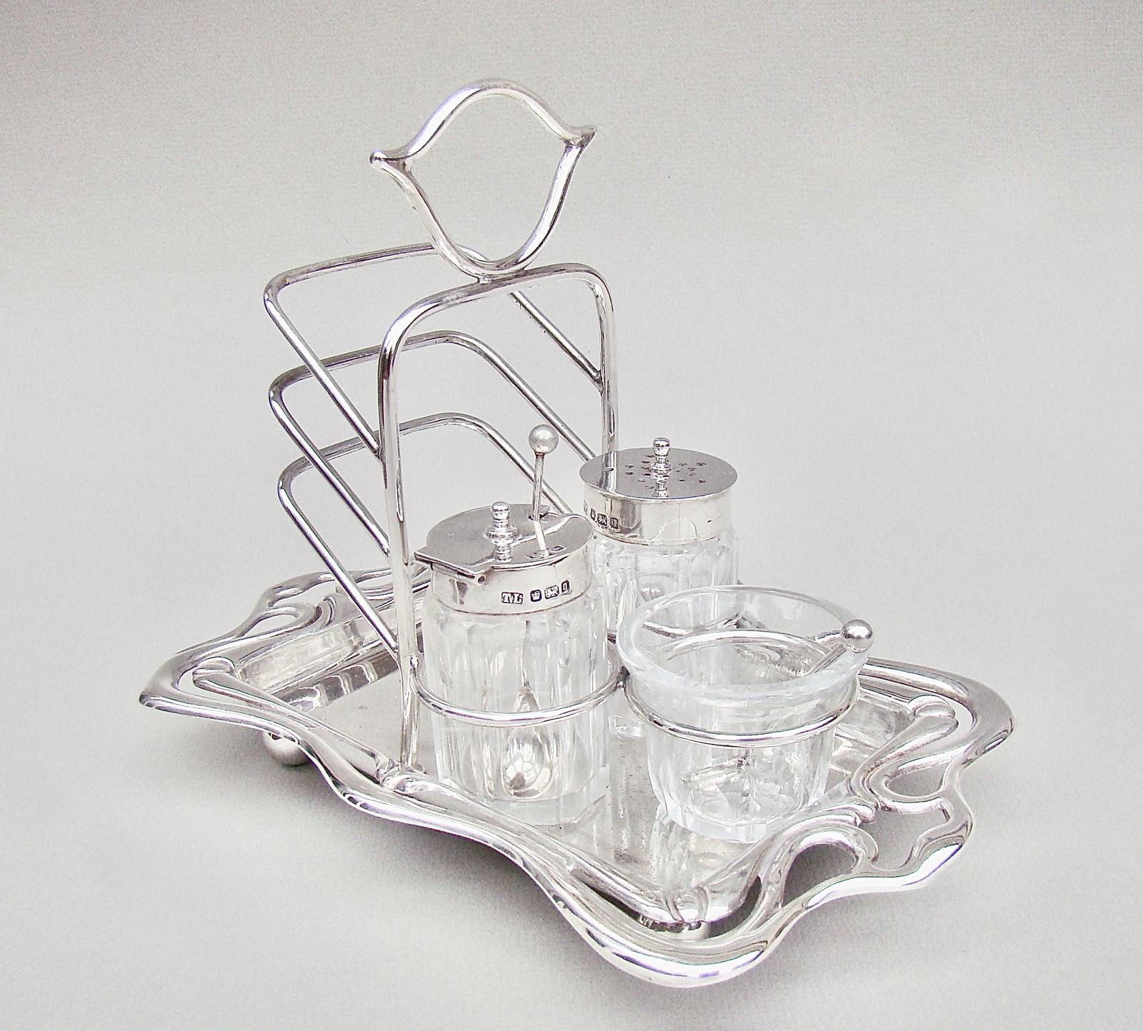 Rare Art Nouveau Silver Breakfast Set by Thomas Levesley, Sheffield 1908