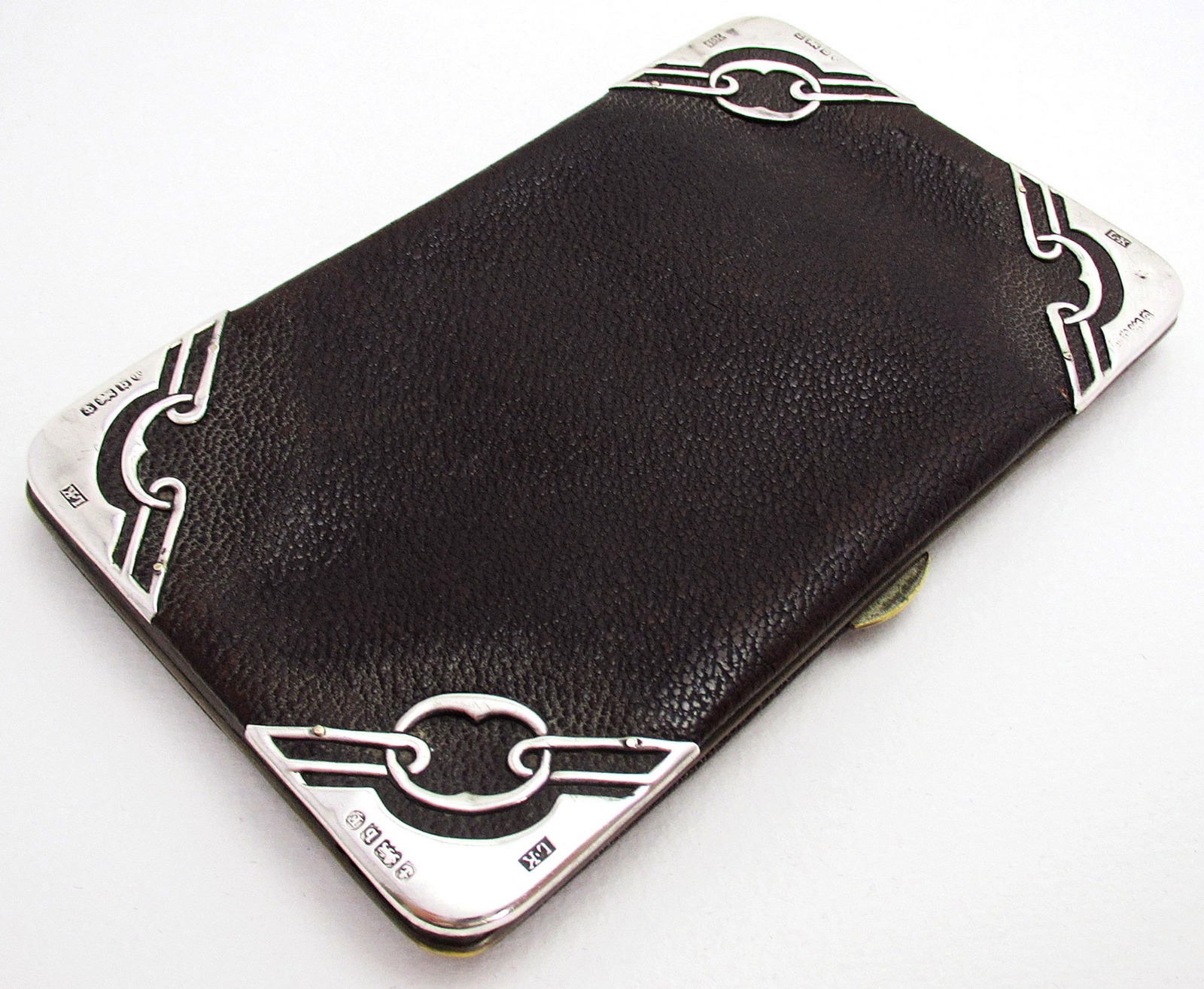 Rare Arts & Crafts 1901 Antique Solid Sterling Silver Leather Wallet Purse Pocket Coin Stamp Card Case (1 of 6)