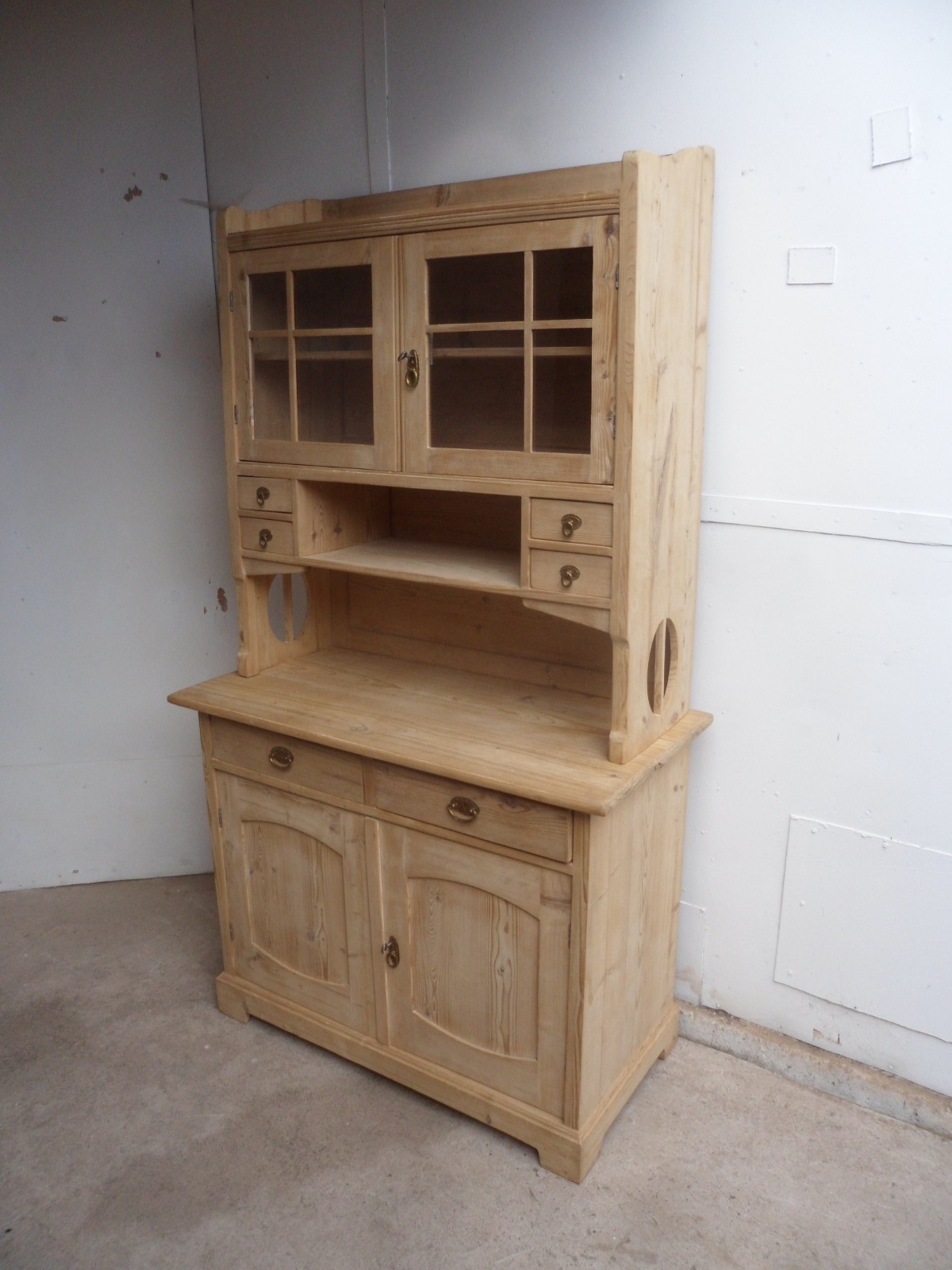Rare Arts & Crafts Antique Pine 2 Piece Kitchen Dresser to wax / paint