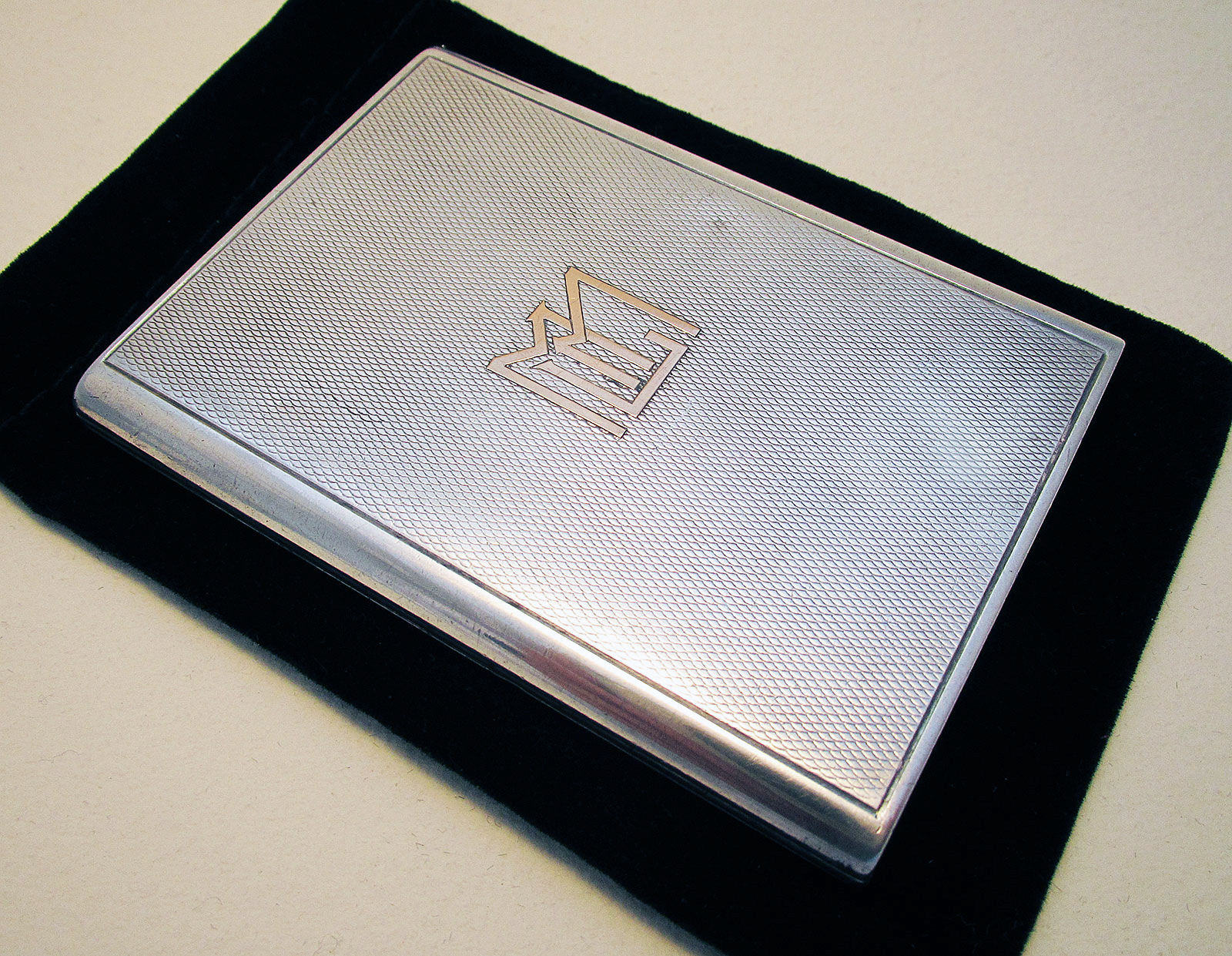 Rare Asprey & Co. Slide Action / Hidden Clasp Solid Sterling Silver Cigarette Case / Box, Spring-Loaded. Rose Gold Monogram 1929 (1 of 1)