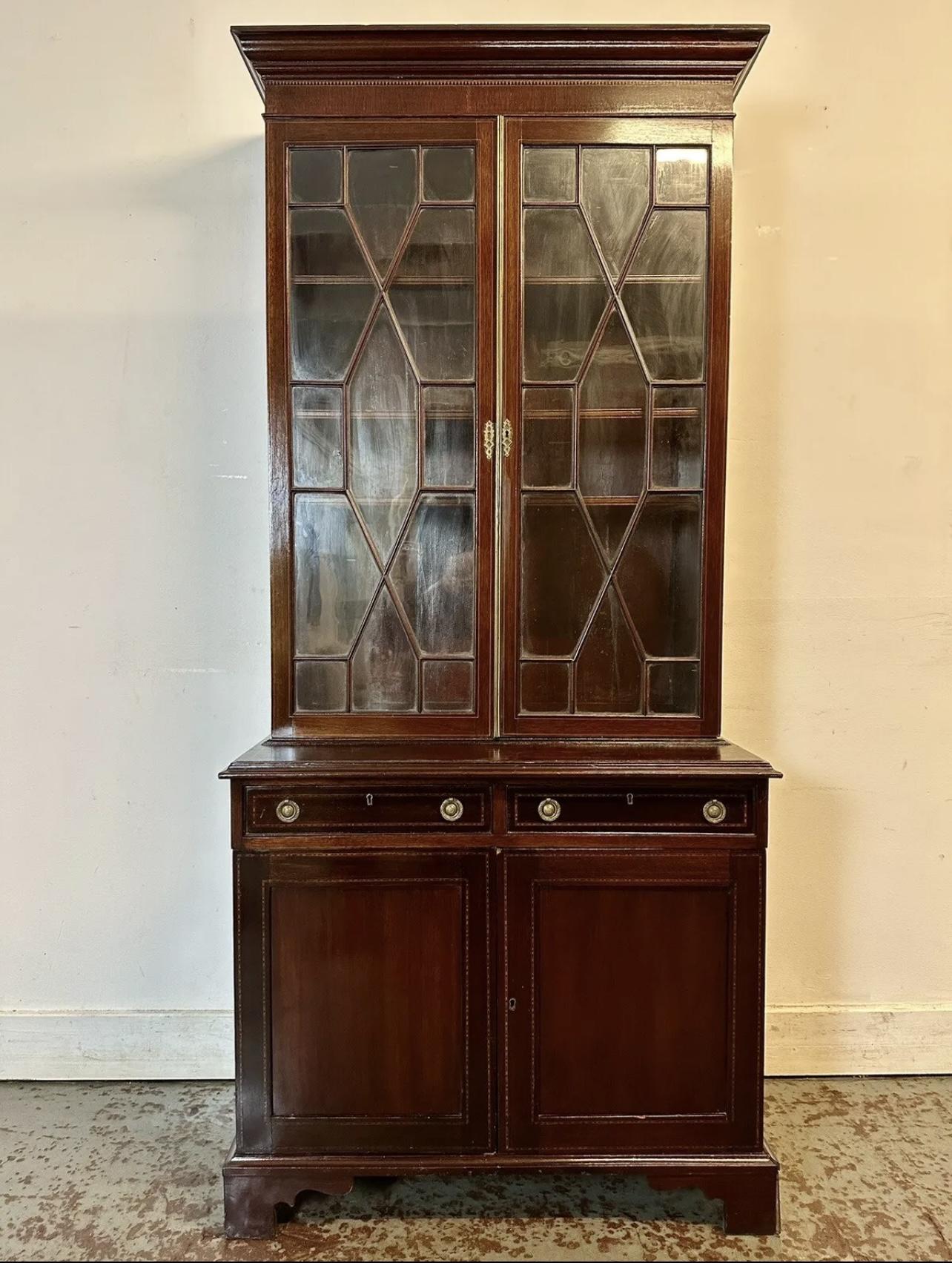Rare & Beautiful 110 Year Old Edwardian Antique Mahogany Glazed Bookcase c.1910