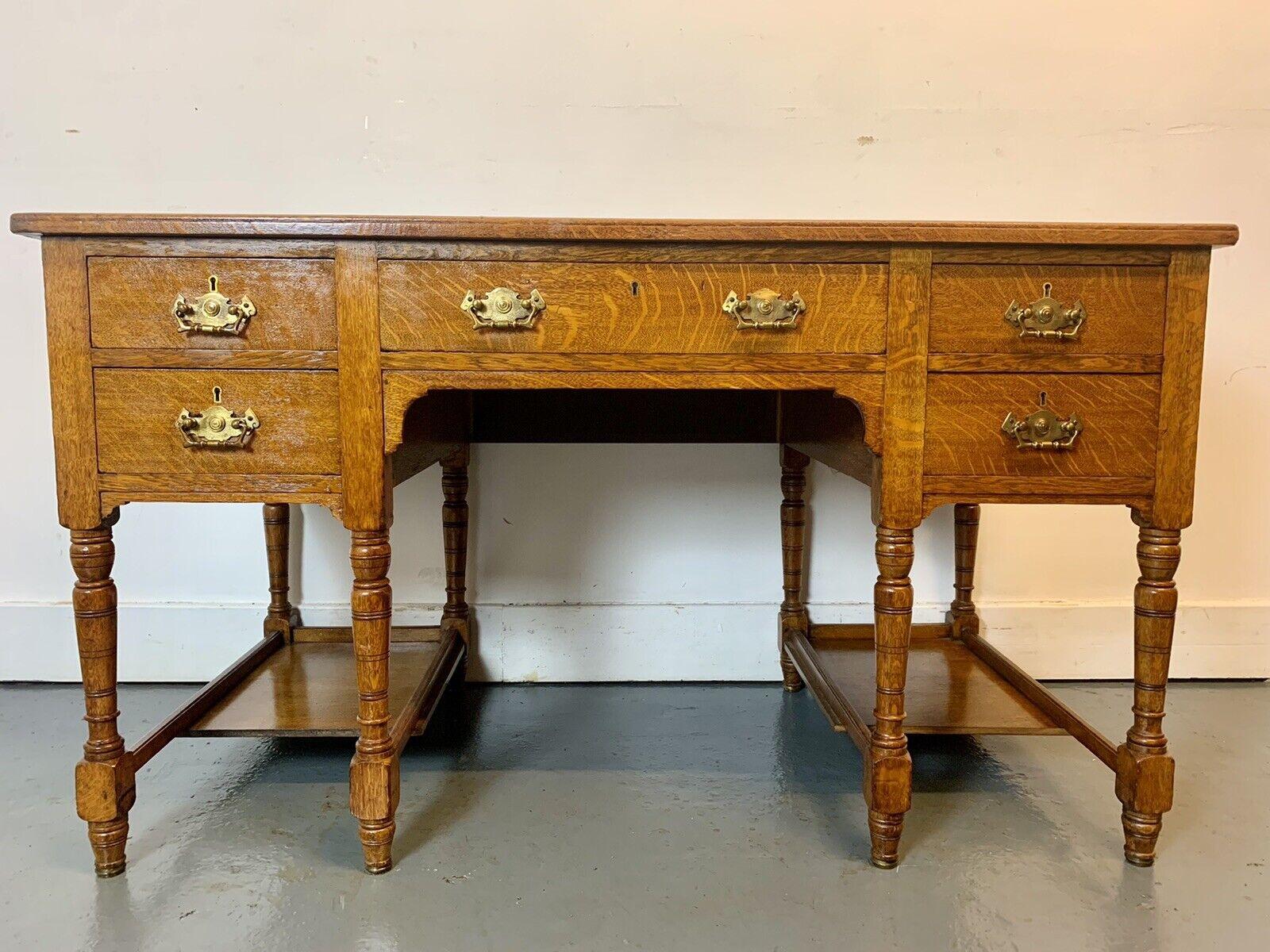 Rare & Beautiful 130 Year Old Victorian Antique Oak Leather Topped Desk c.1890