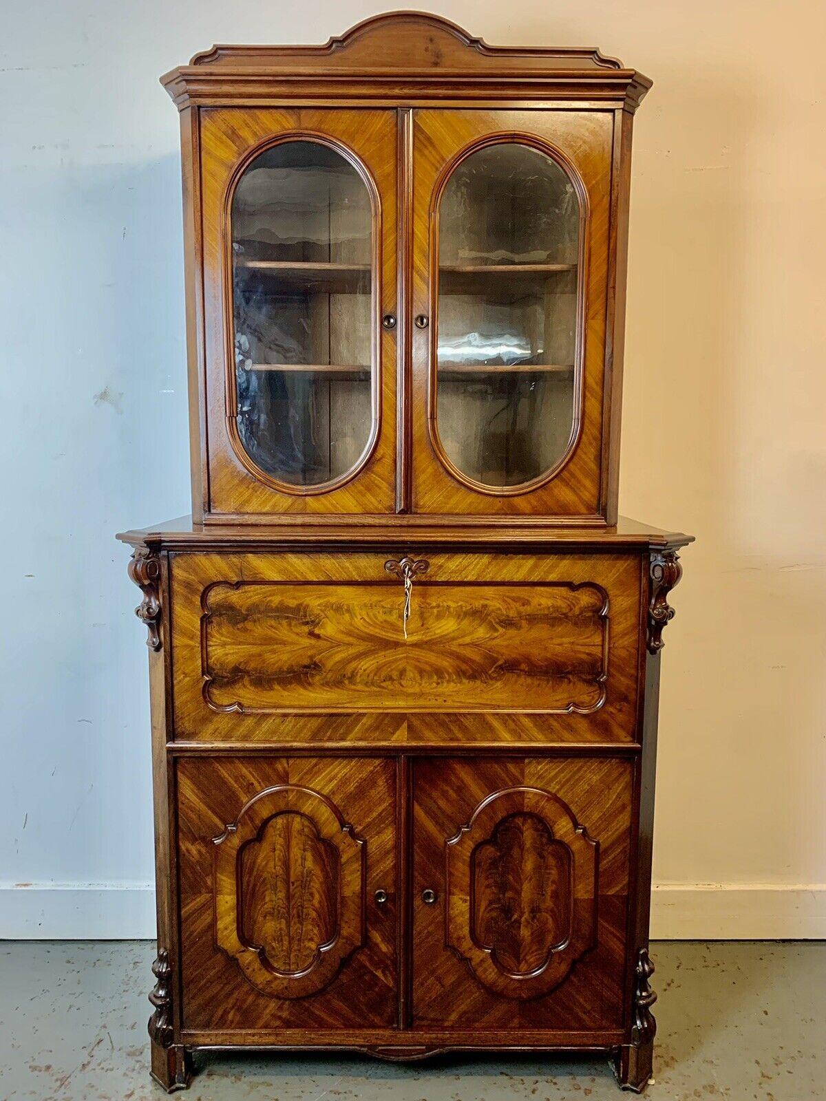 Rare & Beautiful 140 Year Old Antique Continental Secretaire Bookcase c.1880