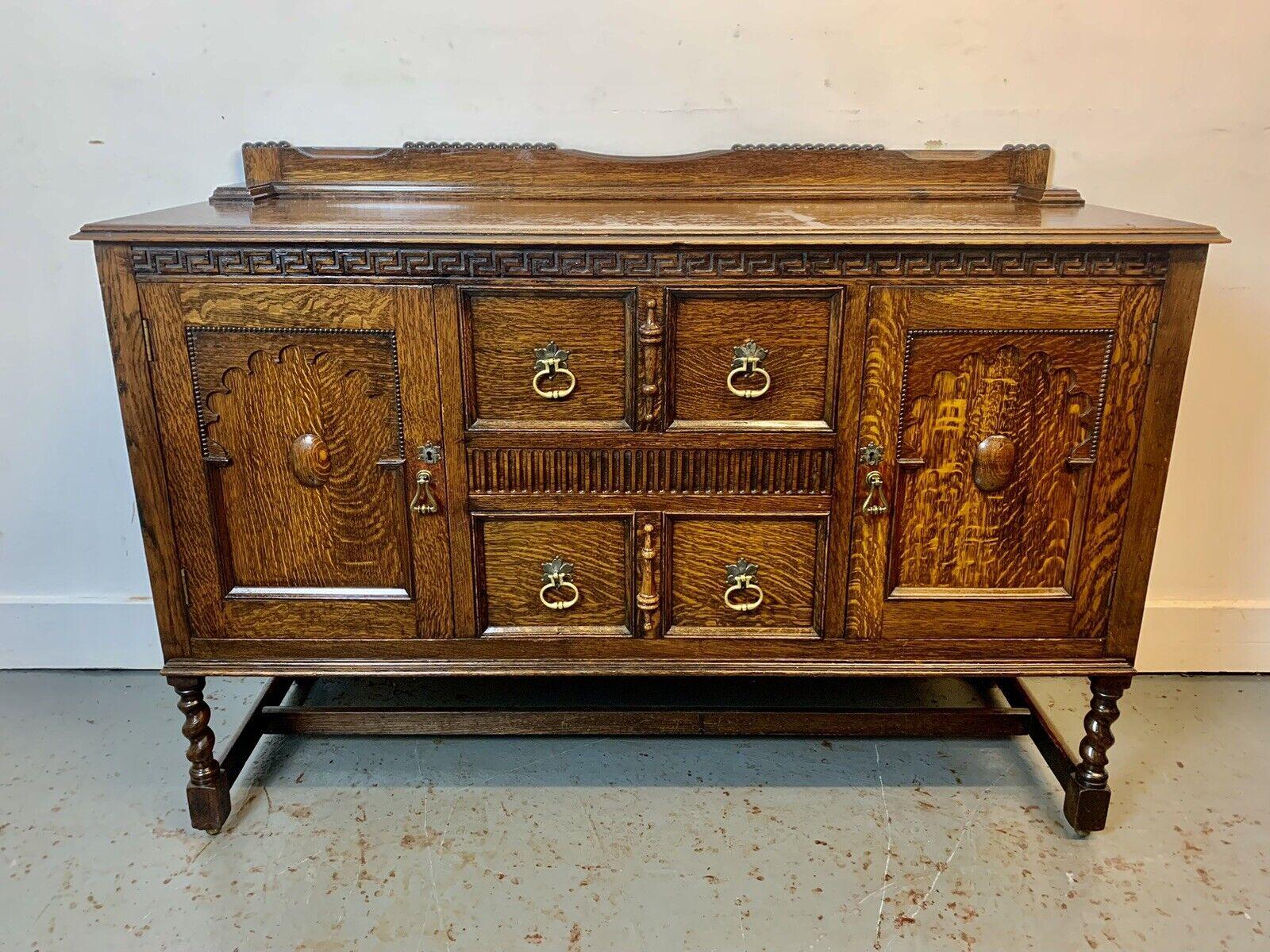 Rare & Beautiful 90 Year Oak Jacobean Revival Carved Sideboard c.1930