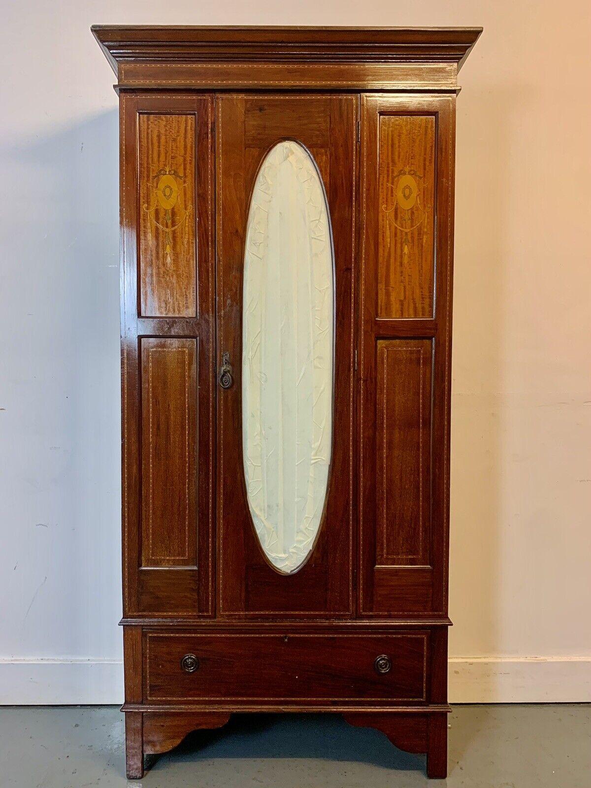 Rare & Beautiful Antique Mahogany Inlaid Single Wardrobe c.1910