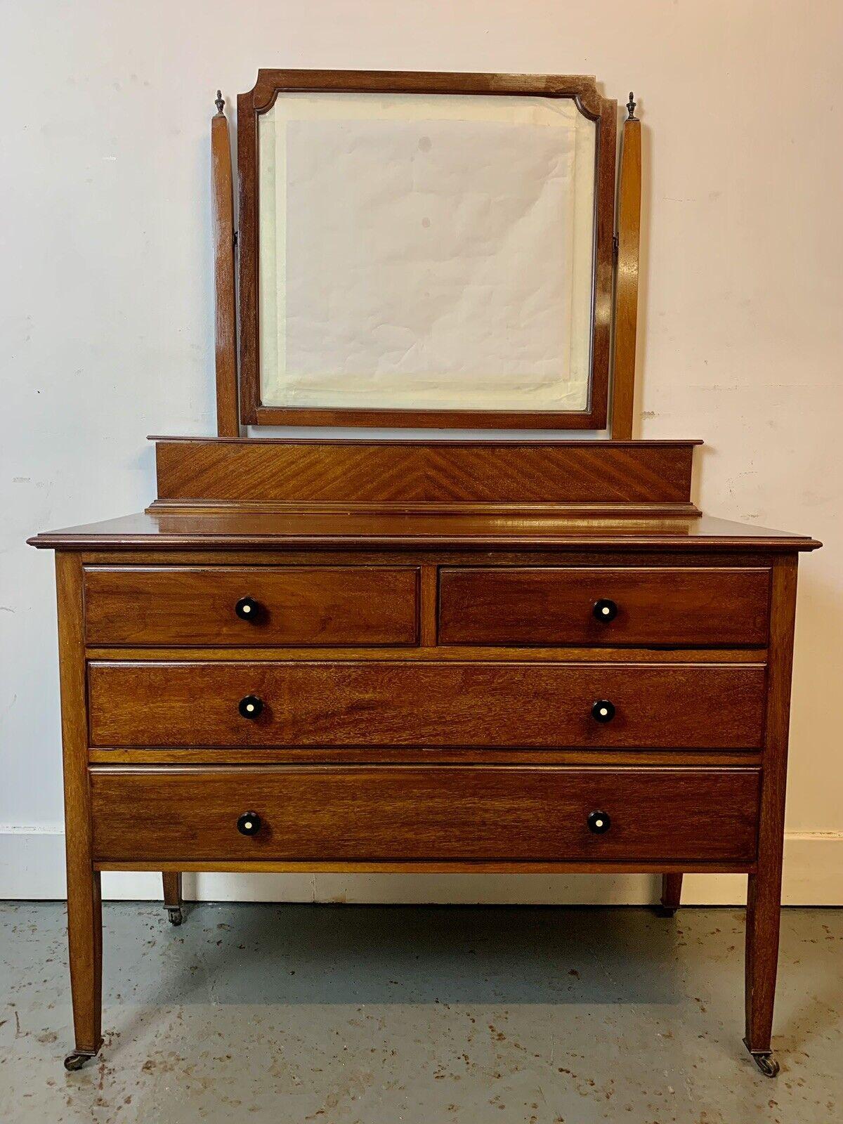 Rare & Beautiful Edwardian Antique Inlaid Mirrored Dressing Table Chest c.1910