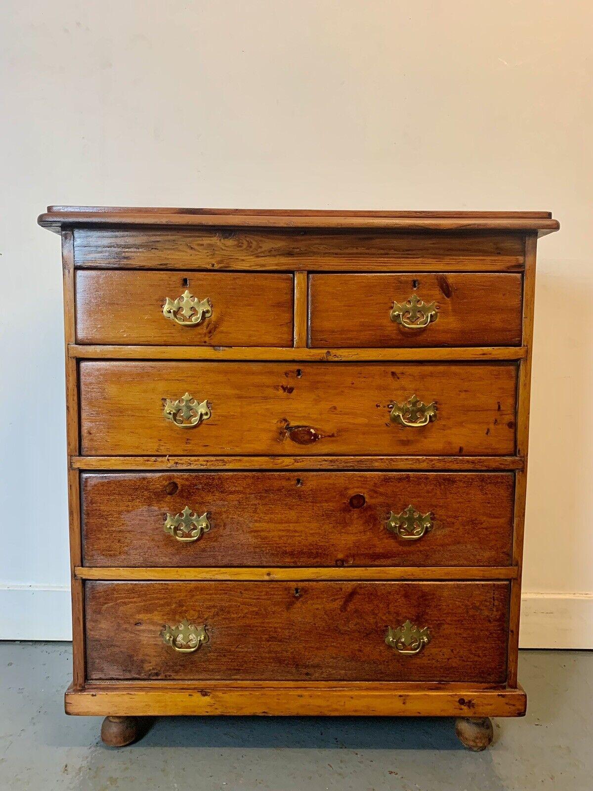Rare & Beautiful Edwardian Antique Stained Pine Chest of Drawers c.1910