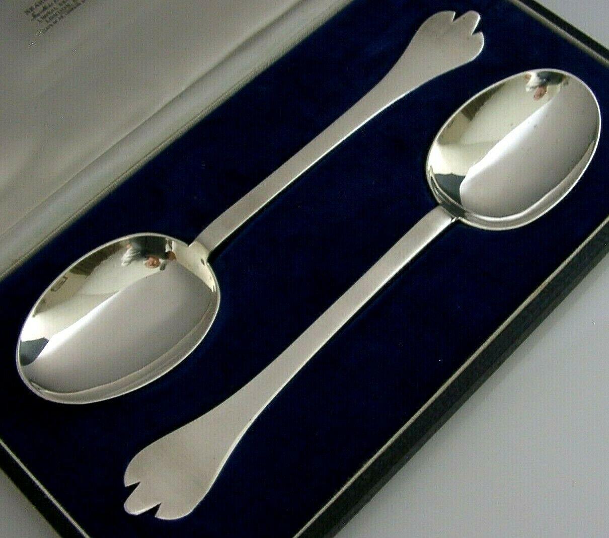 Rare Beautiful English Britannia Sterling Silver Serving Spoons Cased 132g