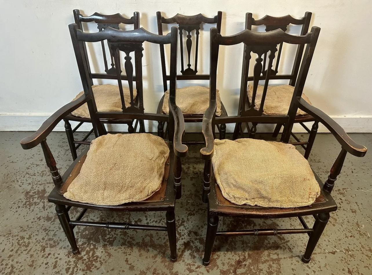 Rare & Beautiful Set of 5 Victorian Antique Oak Dining Chairs c.1900