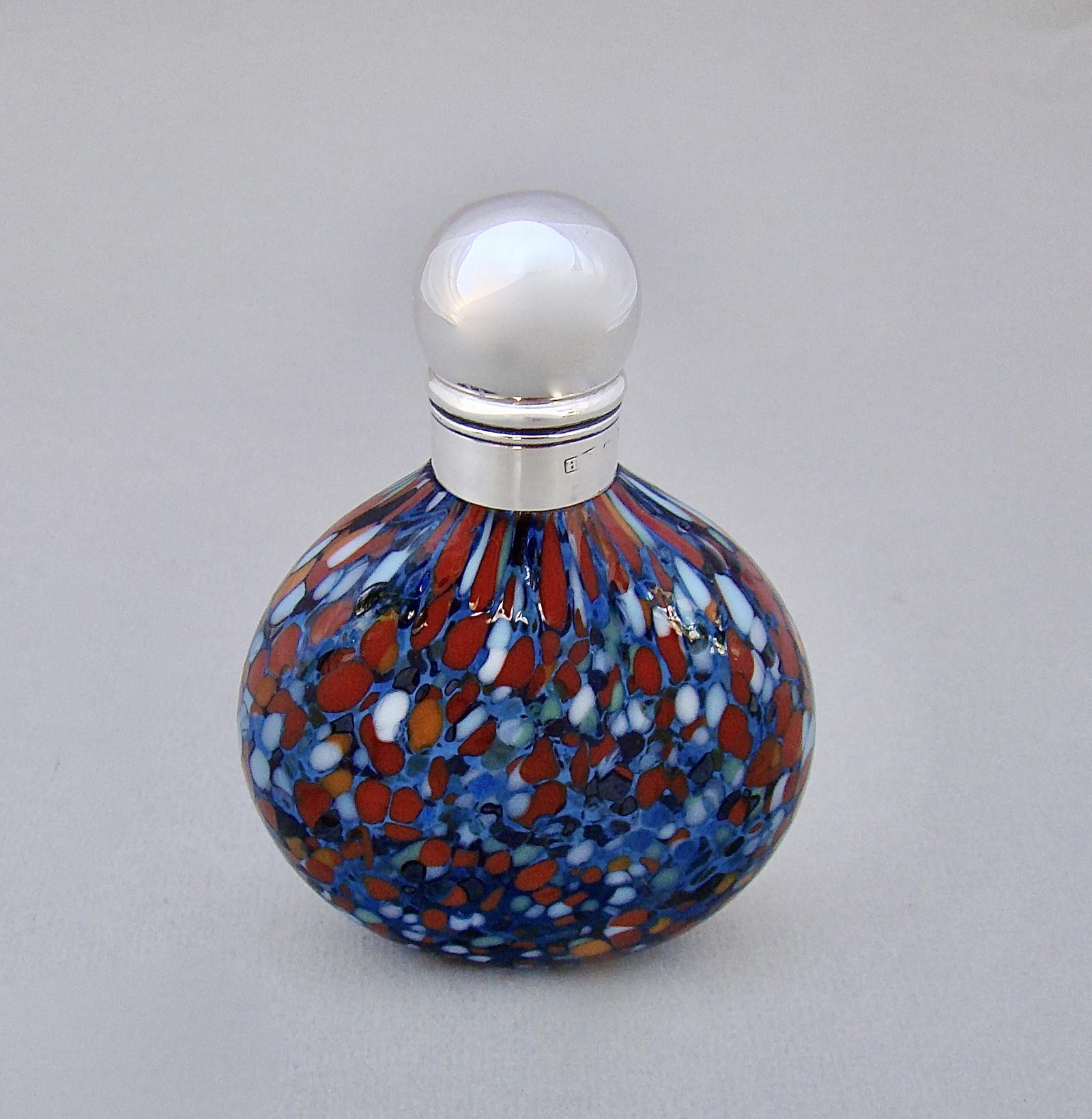 Rare Bohemian Silver Mounted Splatter Glass Scent Bottle - Birmingham c.1900