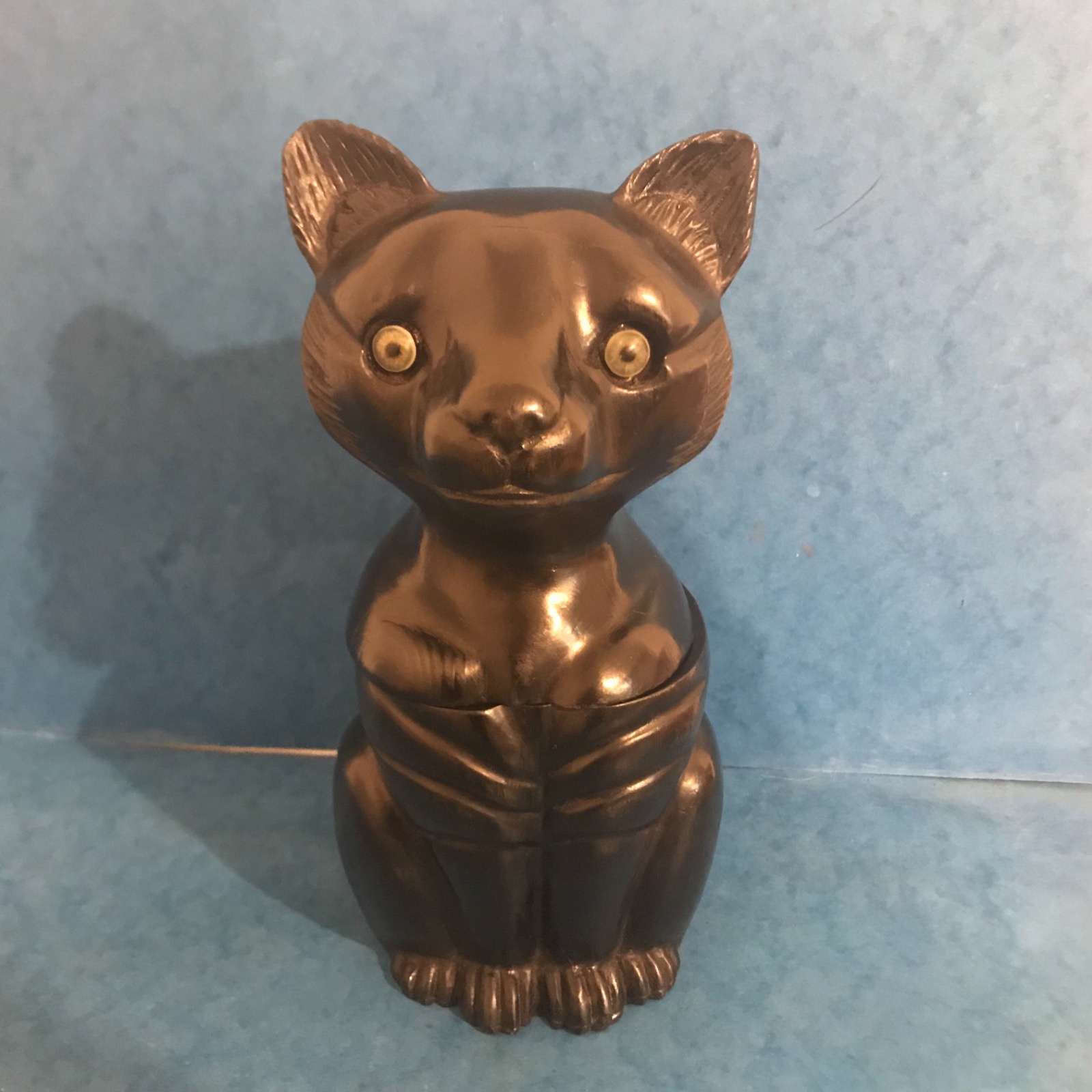 Rare Carved Ebonised Cat Tea Caddy / Tobacco Jar c.1900