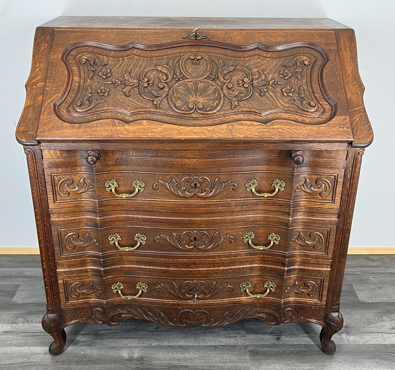Rare Carved French Oak Beautiful Bureau (1 of 14)