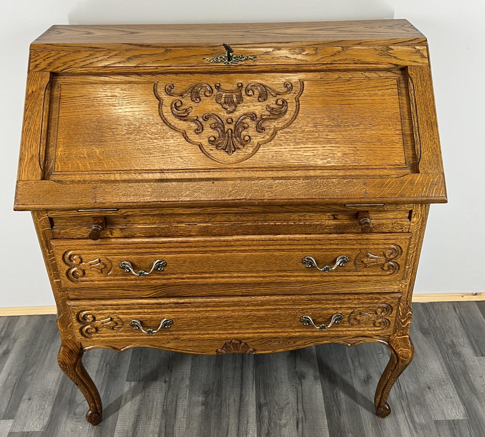 Rare Carved French Oak Beautiful Bureau / Writing Desk / Secretaire