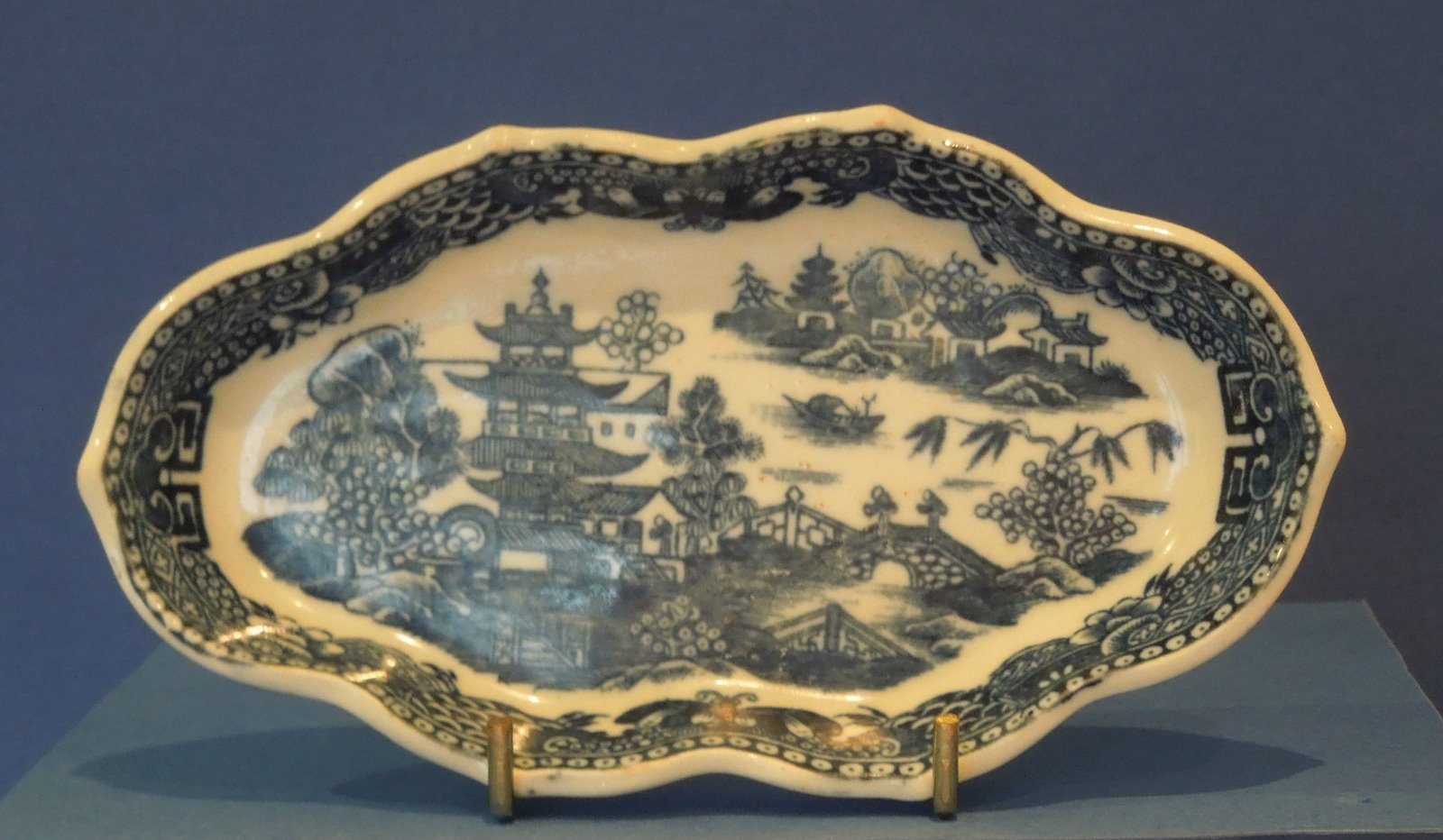 Rare Caughley Blue & White Spoon Tray, 'Pagoda' Pattern