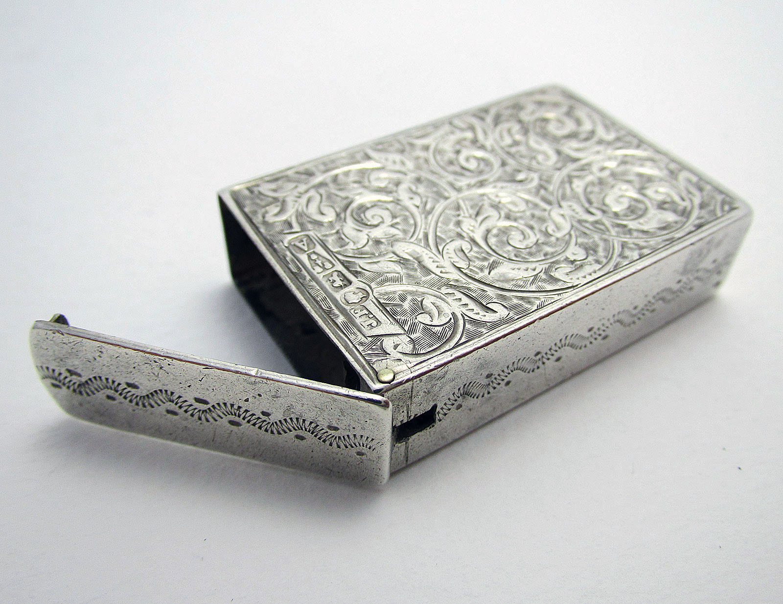 Rare Chester 1884 Victorian Antique Solid Sterling Silver Vesta Case Match Striker Holder Snuff Pocket Box 19th Century English Hallmarked