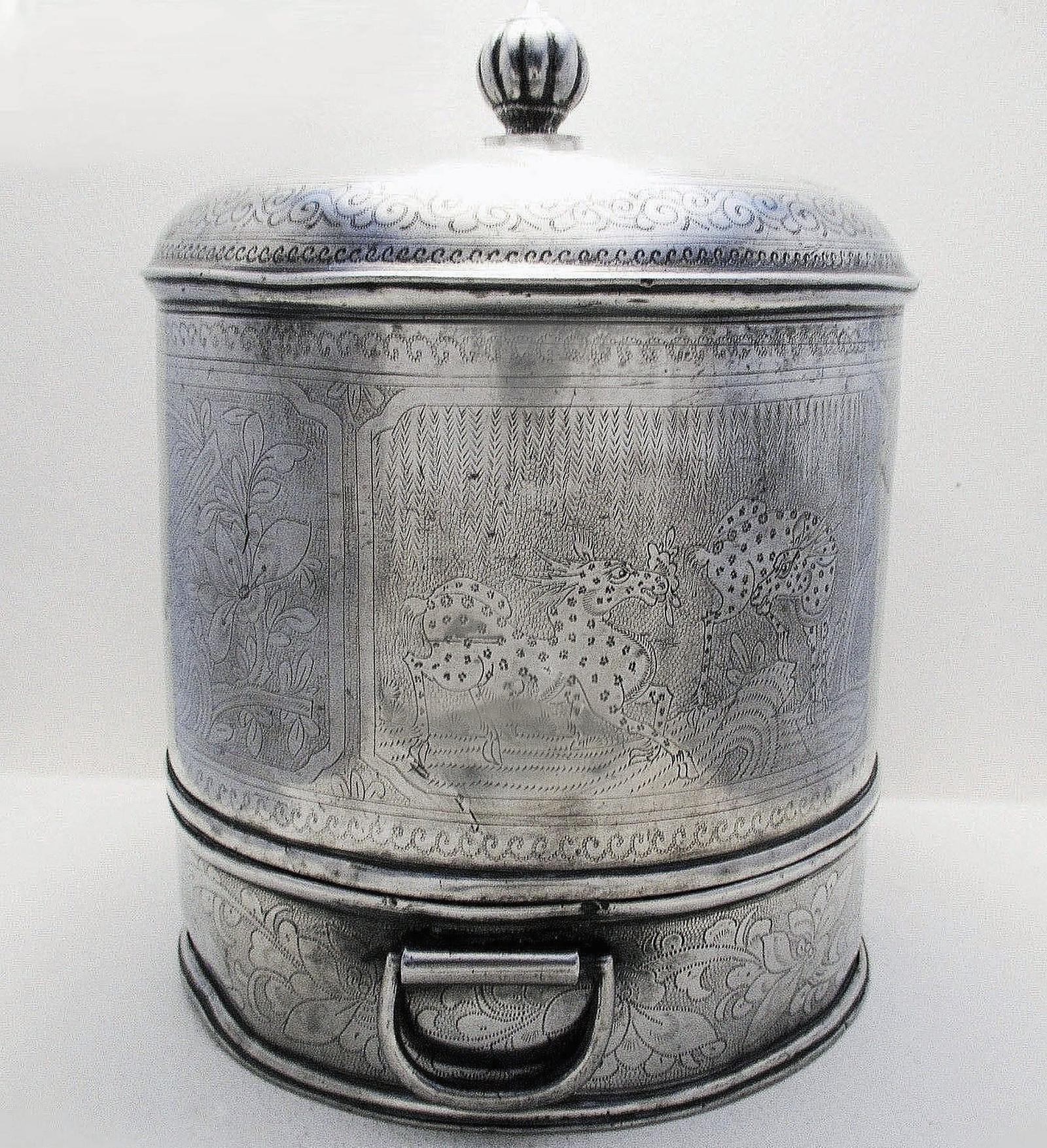 Rare Chinese Antique Pewter Food Basket Steamer Dish Warmer Tea Caddy Box c.1900