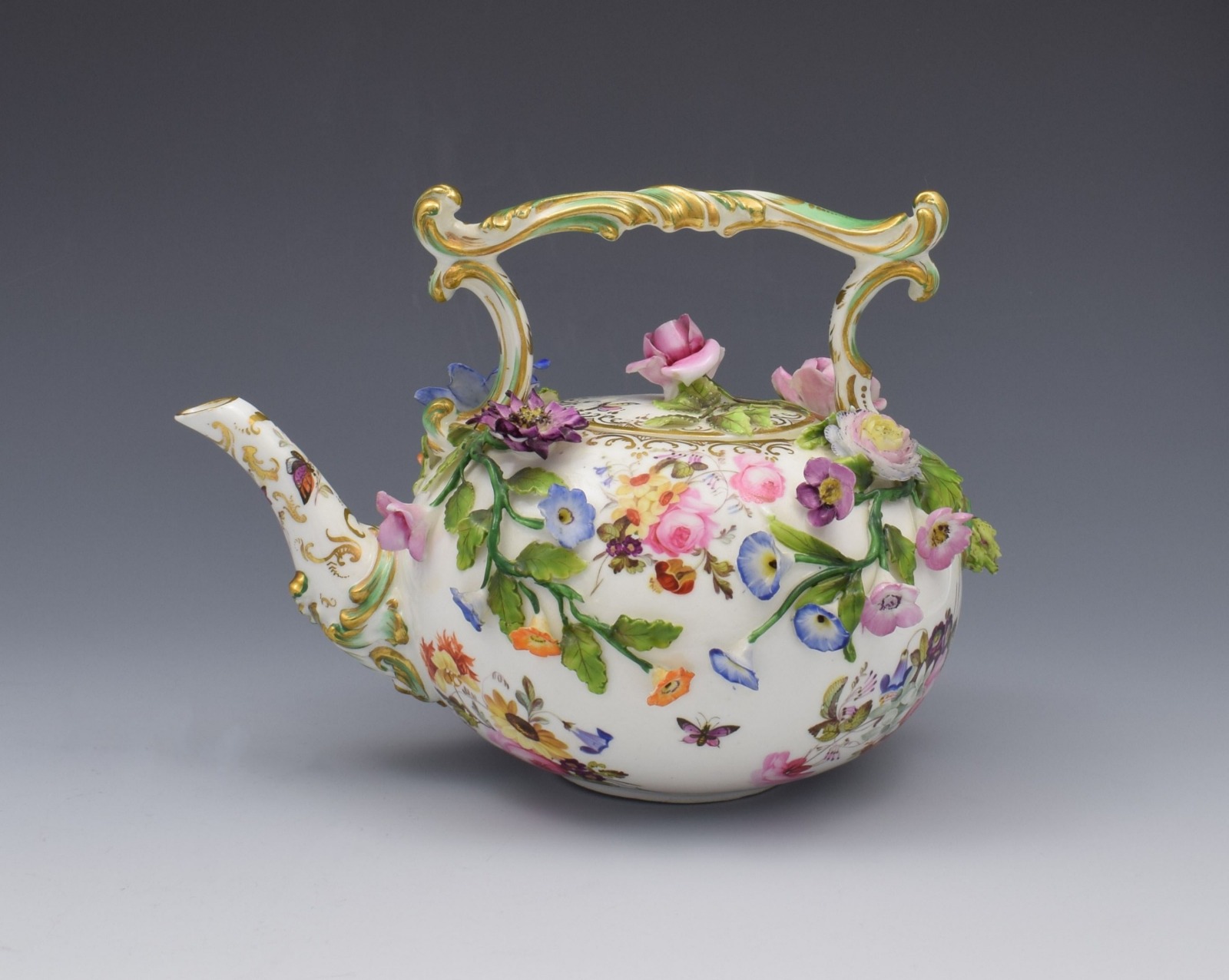 Rare Coalport Coalbrookdale Flower Encrusted Tea Kettle Teapot