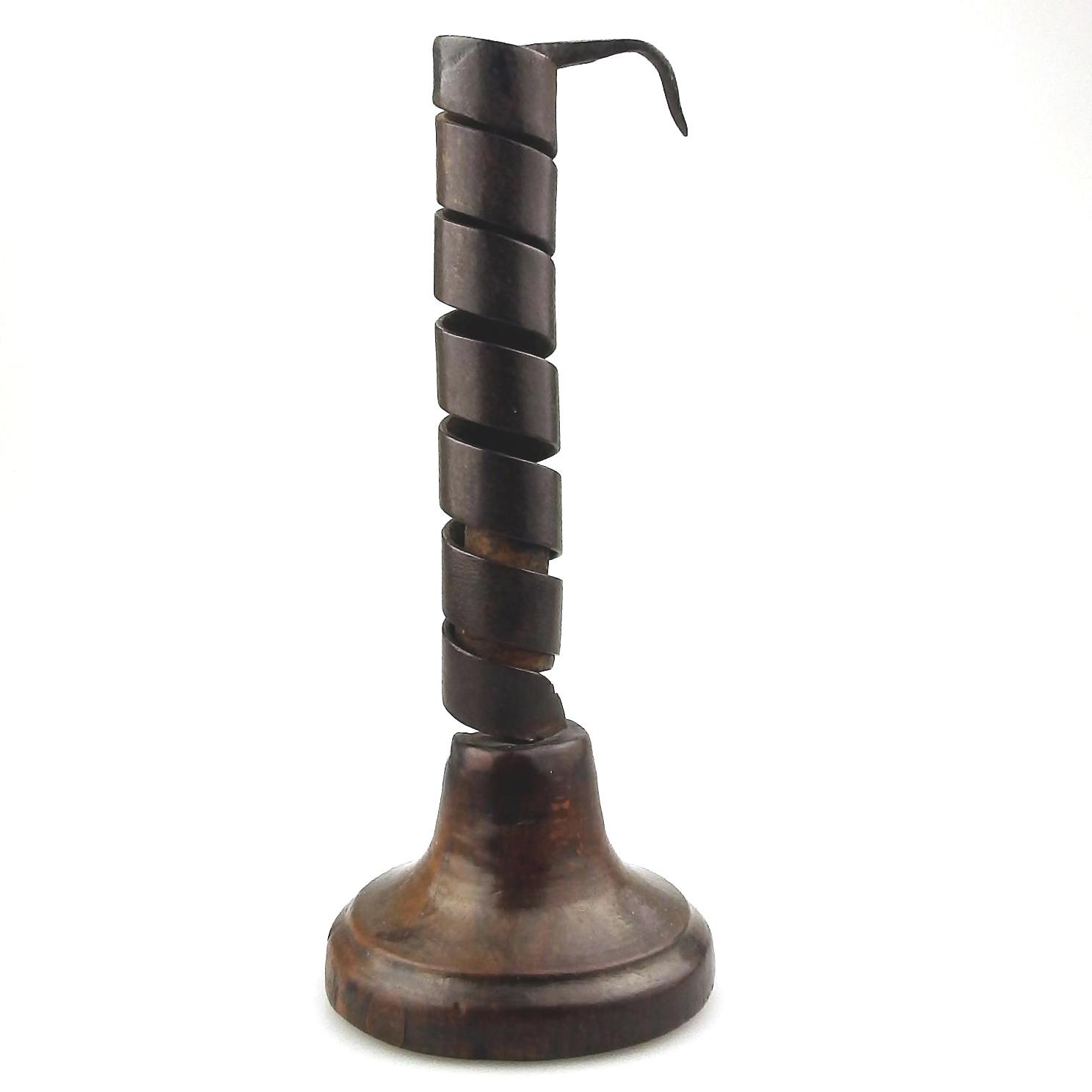 Rare Coiled Steel & Fruitwood 'rat de Cave' Candlestick 18th Century