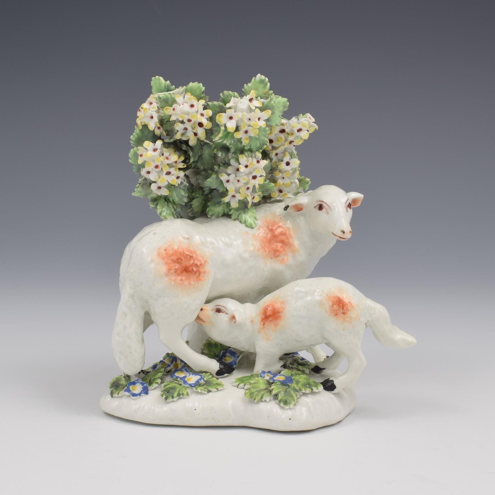 Rare Derby Porcelain Bocage Figure Ewe Suckling A Lamb c.1760