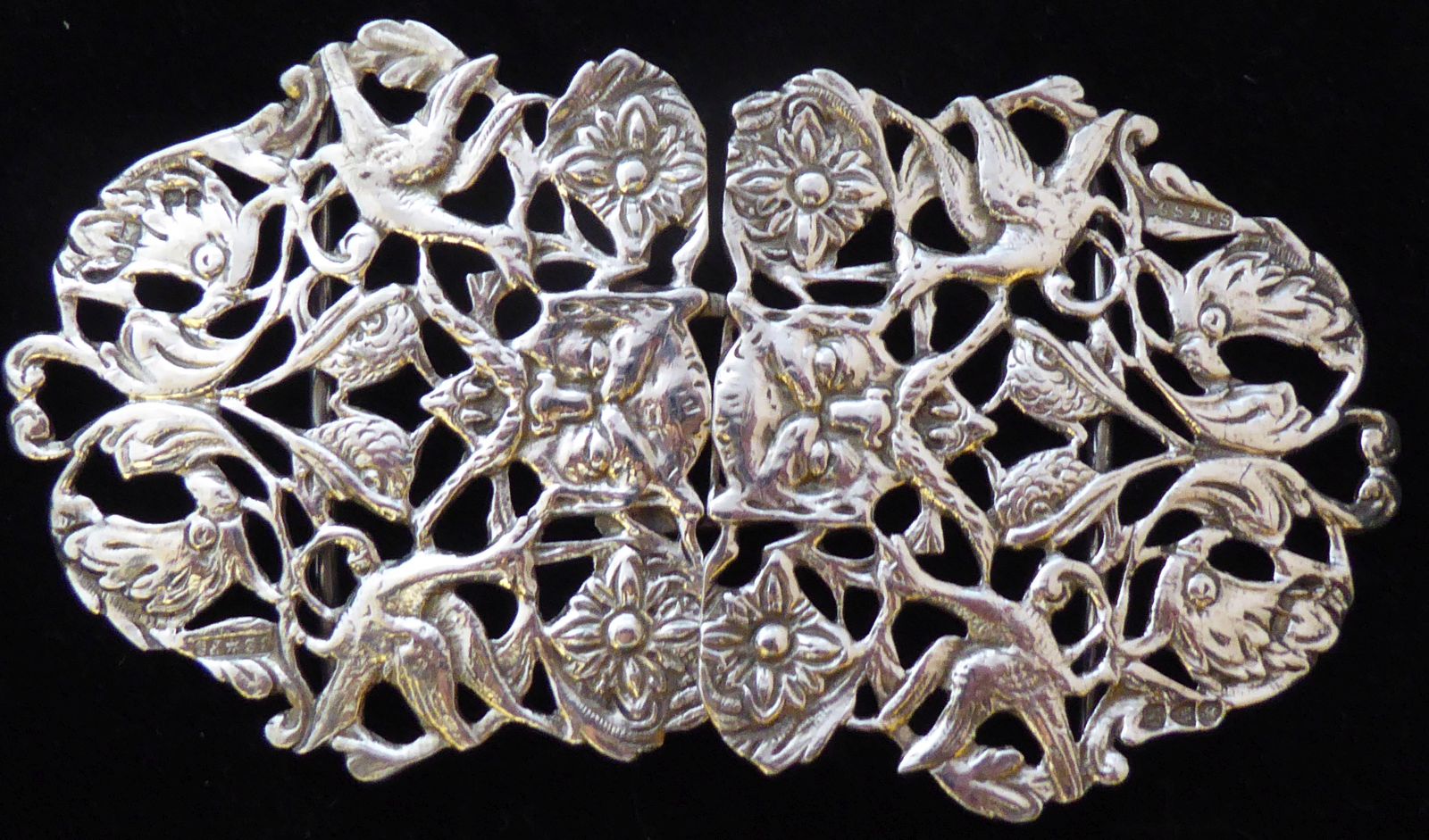 Rare Double Hallmarked Victorian Solid Silver Nurses Belt Buckle Maternity Stork