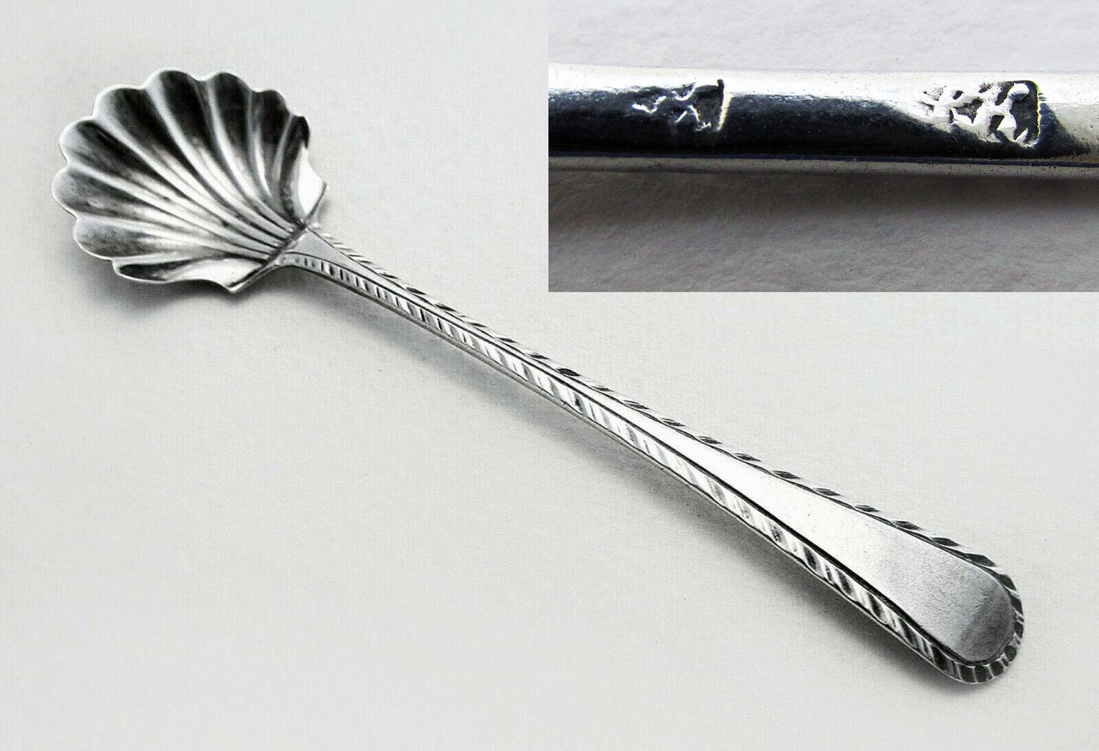 Rare Duty Dodger Marks, English Georgian George III Solid Sterling Silver Salt Mustard Condiment Spoon Shovel. Feather Edge. 18th-century