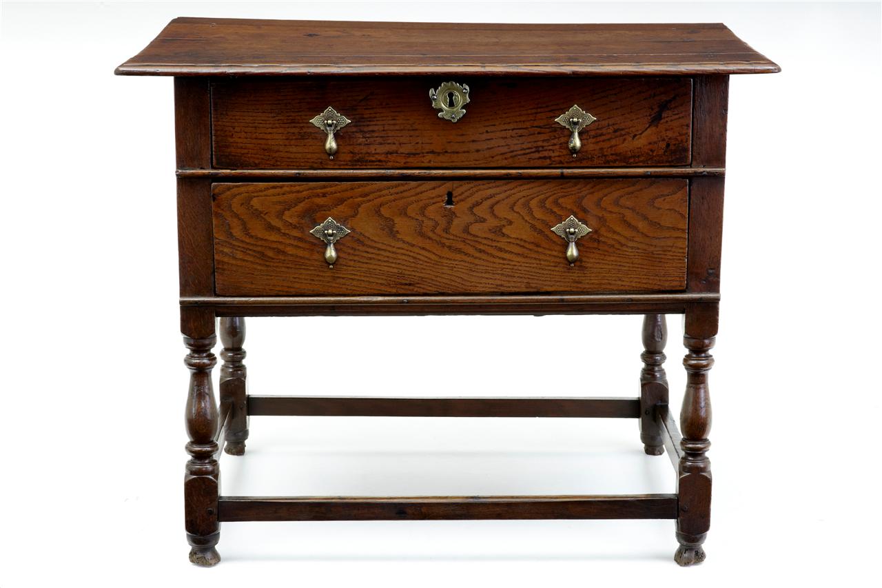 Rare Early 18th Century Antique 2 Drawer Oak Side Table (1 of 7)