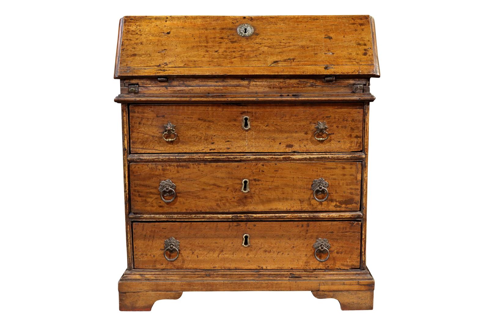 Rare Early 18th Century Walnut Bureau with Original Ironwork c.1720