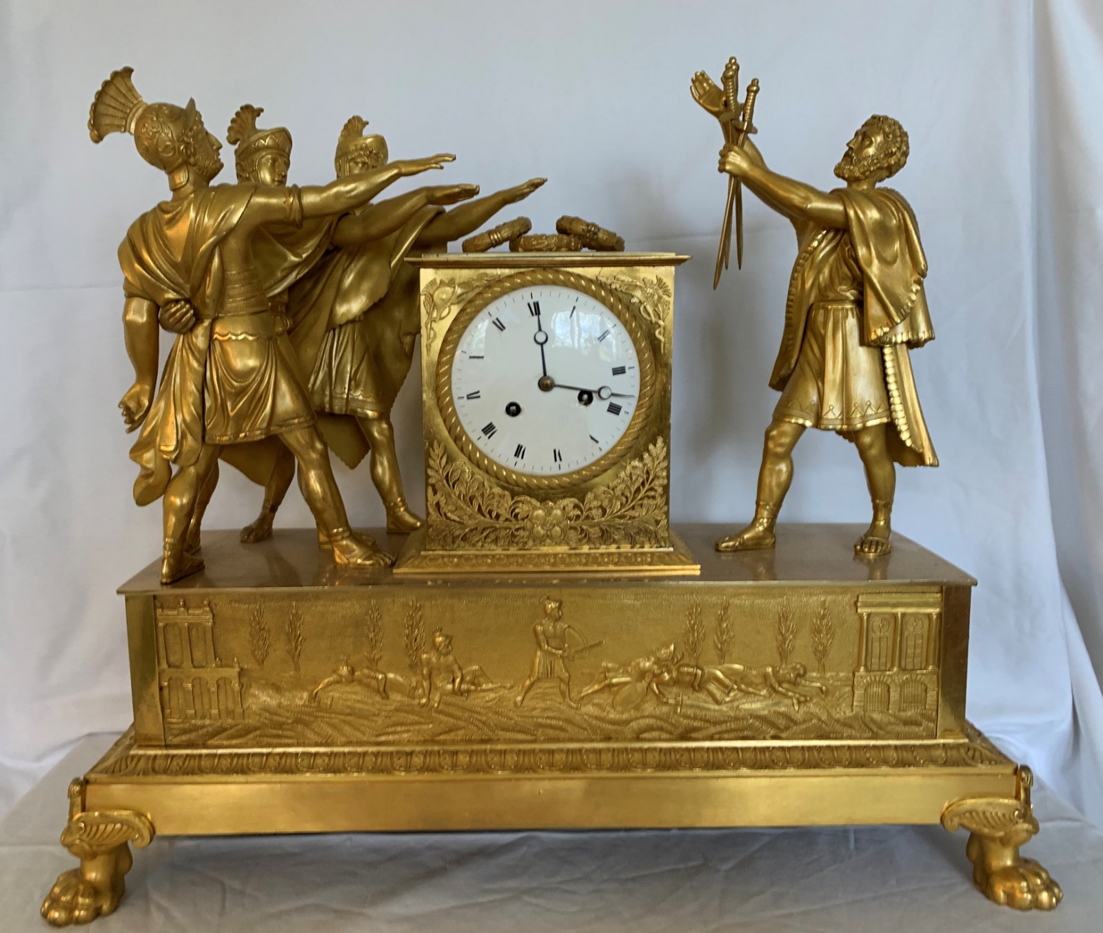 Rare Early 19th Century French Ormolu Clock Depicting 'the Oath of the Horatii'