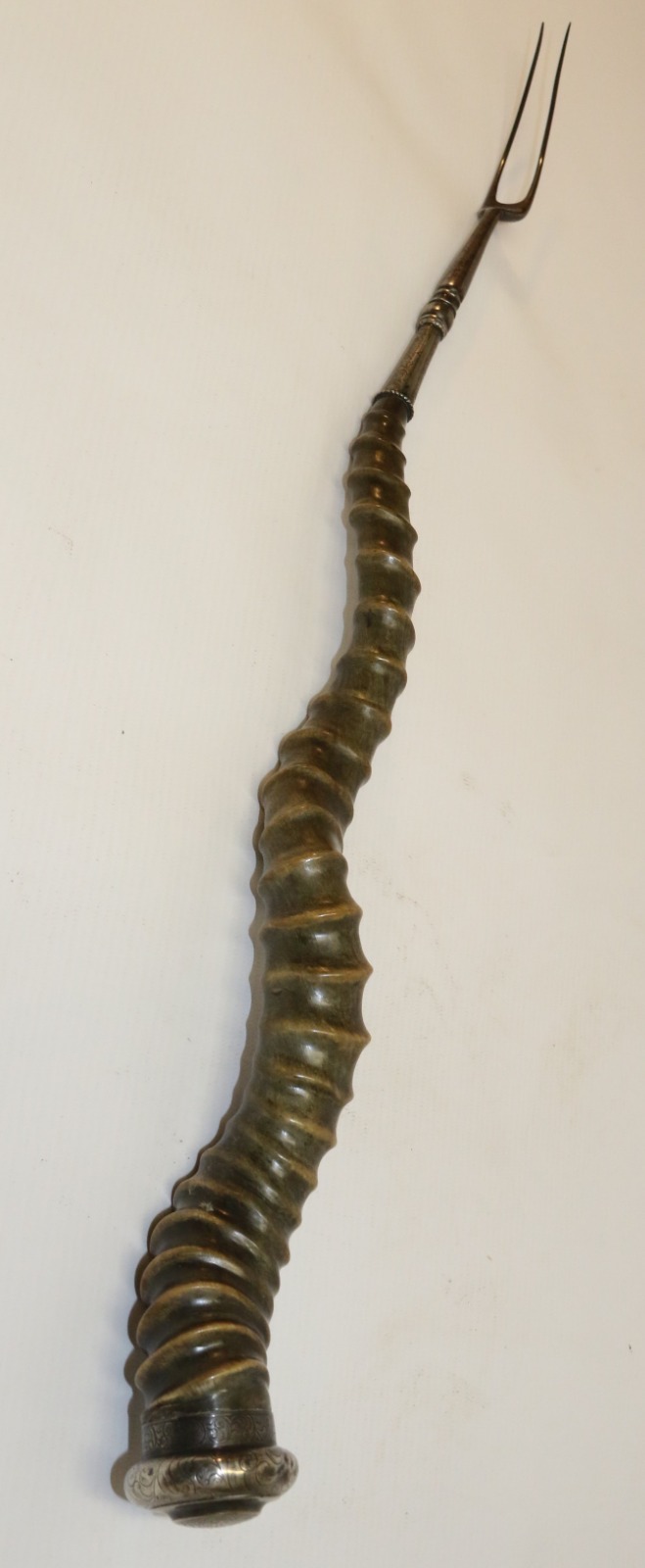 Rare Early 19th Century Silver & Horn Mounted Roasting Fork