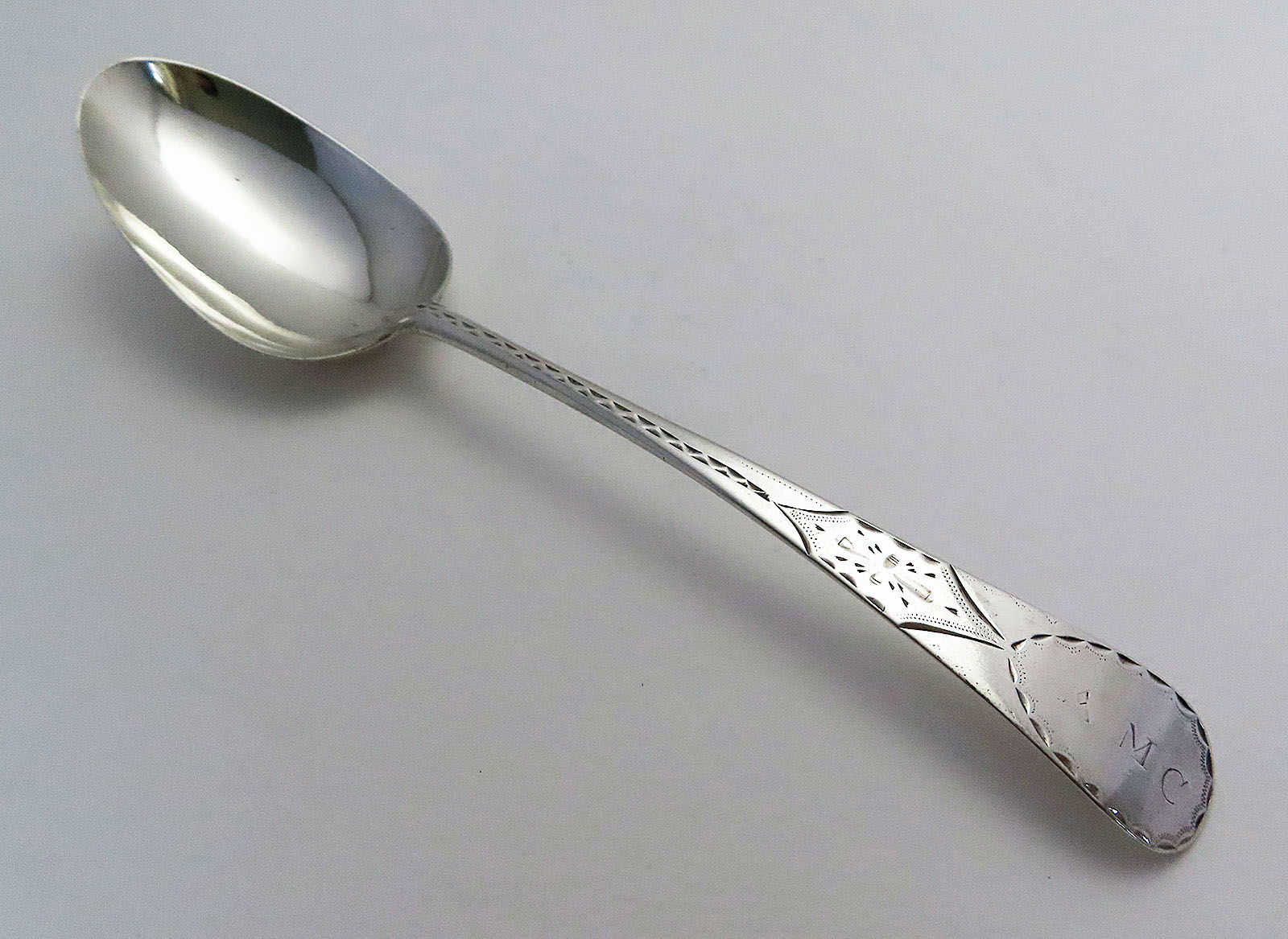 Rare Early Hester Bateman 1780 Georgian George III Bright-Cut Solid Sterling Silver Antique Table/Serving Spoon. English Hallmarked.
