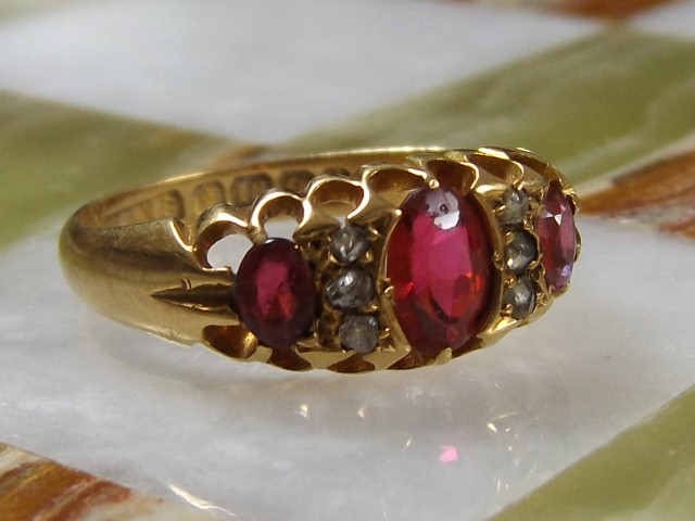 Rare Edwardian 18ct Gold Ruby & Diamond Ring