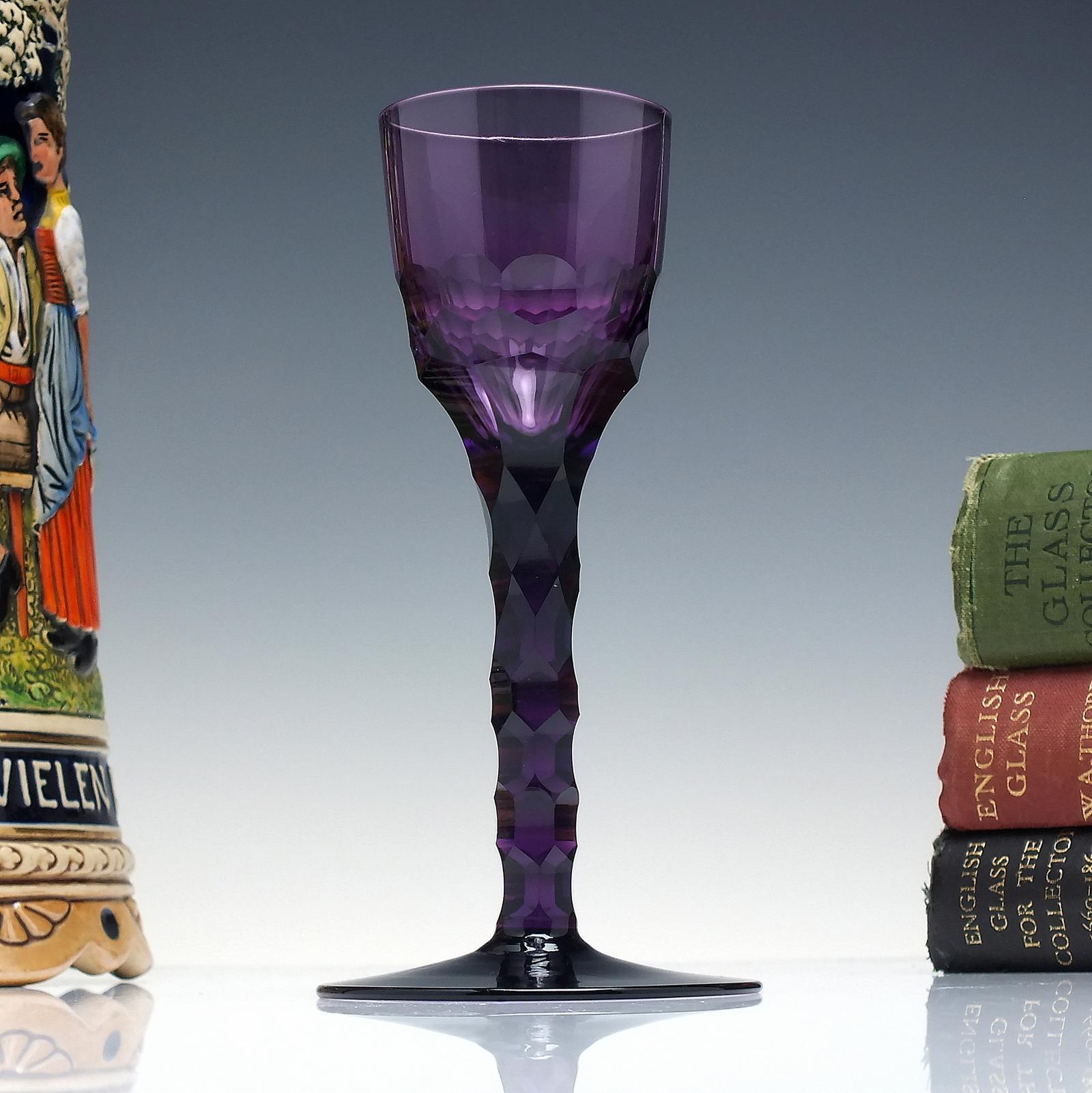 A rare Edwardian Amethyst Facet cut cordial wine glass dating to c1910.