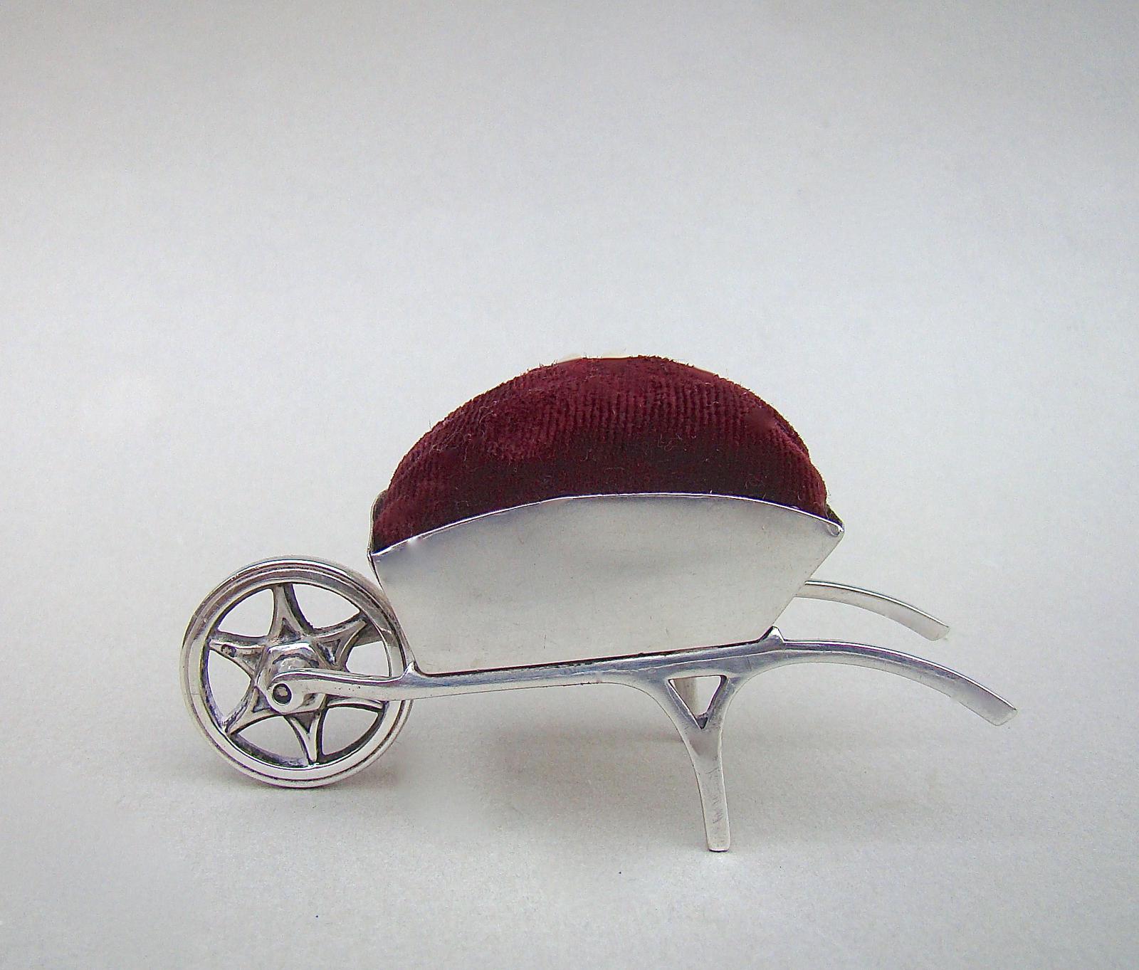 Rare Edwardian Silver Wheelbarrow Pin Cushion by Adie & Lovekin, Birmingham 1908