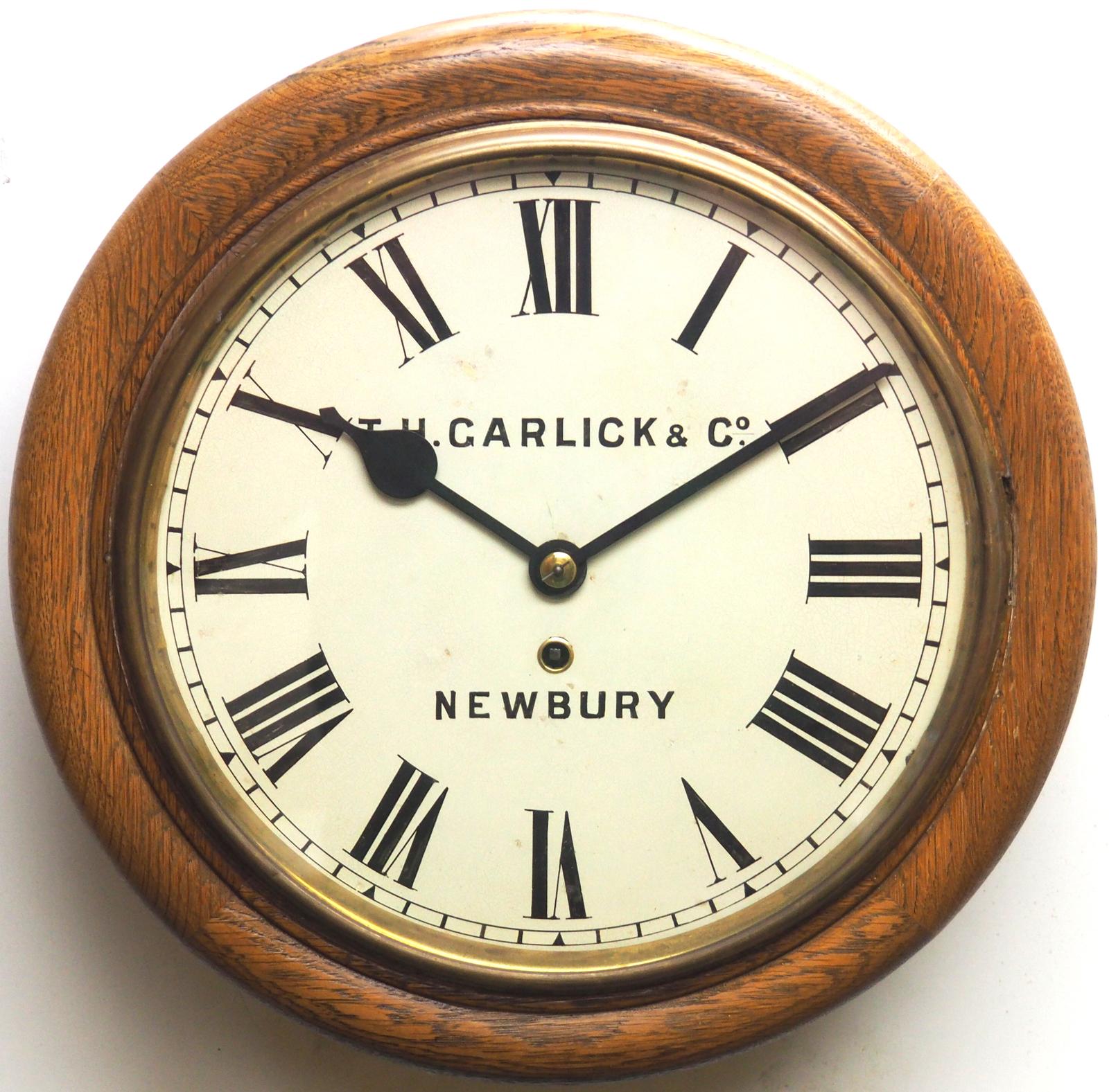 Rare English Mahogany Fusee 12 Inch Dial Wall Station Public School Clock Signed T H Garlick & Co - Newbury