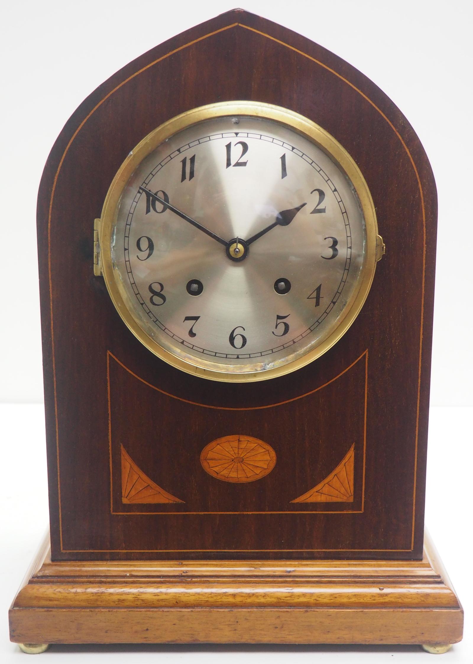 Rare English Quarter Striking Mantel Clock - 8 Day Inlaid Lancet Mantle Clock (1 of 12)