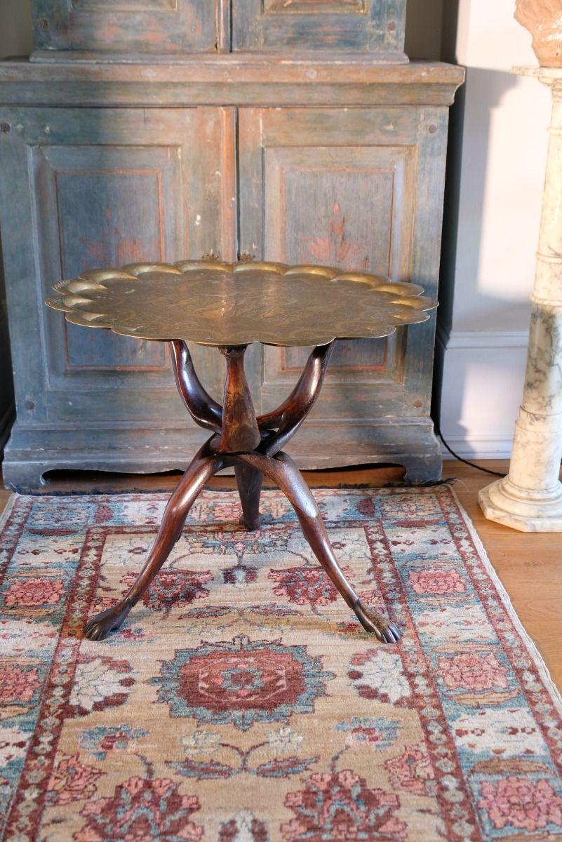 Rare Entwined Carved & Folding Benares Brass Table
