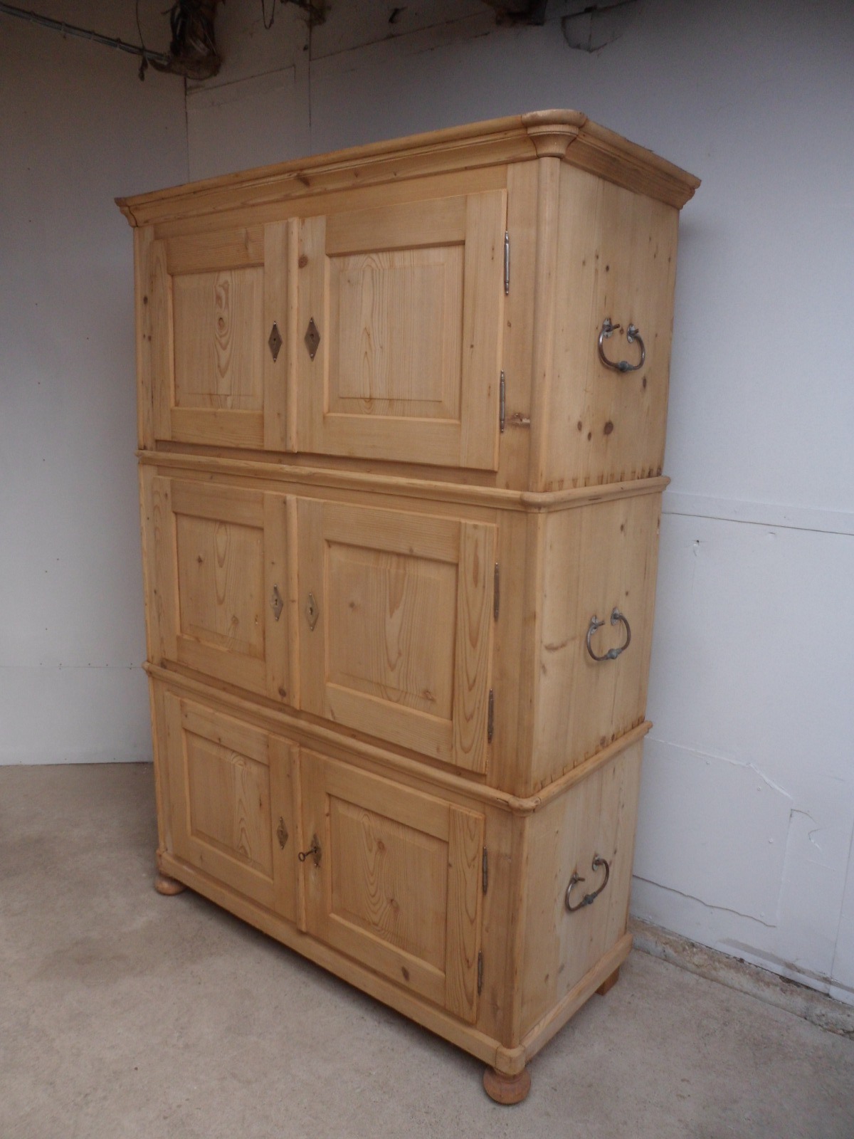 Rare Extra Large Antique Pine 3 Piece Campaign Cupboard to paint / wax